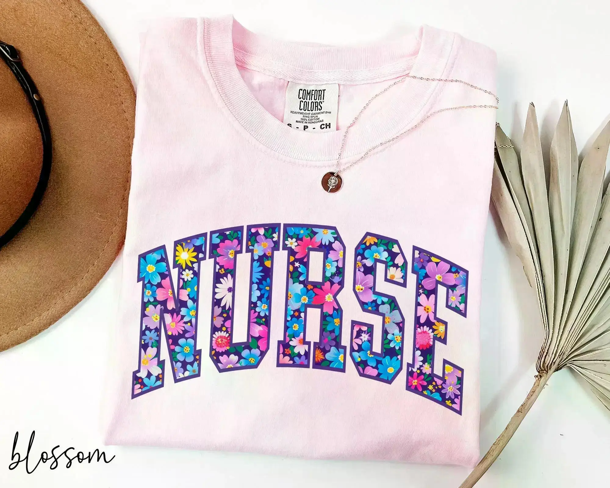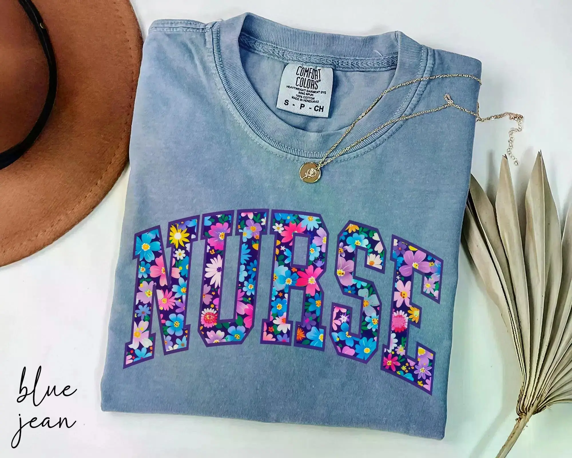 Comfort Colors Floral Nurse T-Shirt, RN Graphic Tee, Nursing School Shirt, Nurse Graduation Gift, New Nurse Appreciation Tee