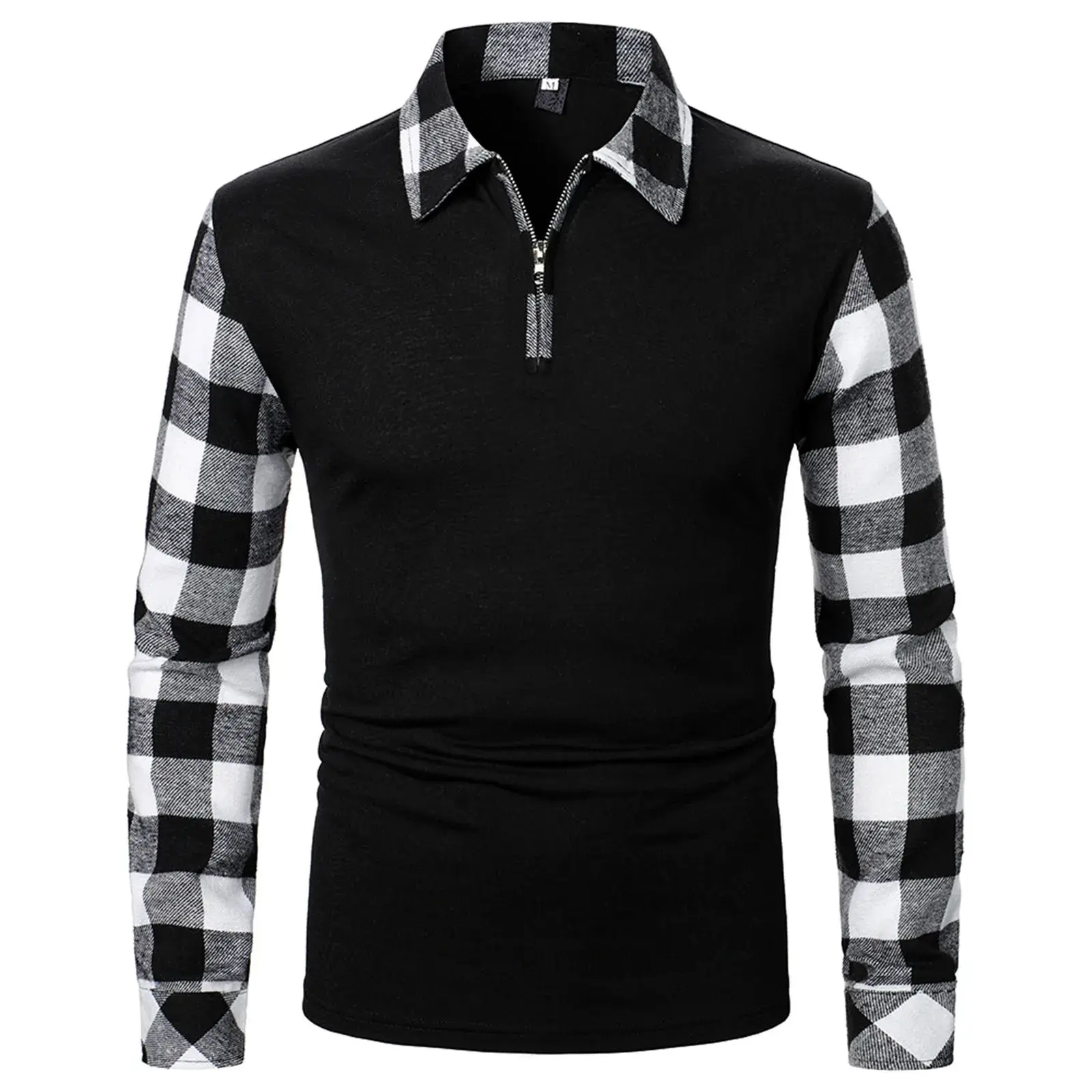 ·Style:Business Pullover Fashion Lapel Zipper Office T-shirt Plaid Splice Formal Work Tee Bottoming Men Top ,Designed to keep you warm and comfortable when the weather turns cold.