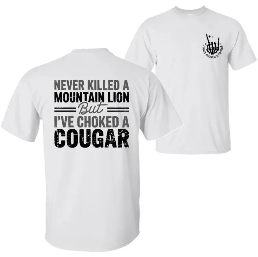 Never Killed A Mountain Lion But I Have Choked A Cougar Shirt, Funny Quote T-shirt, Trending Meme Sarcastic Men's Tee, Sarcastic Humor Shirt