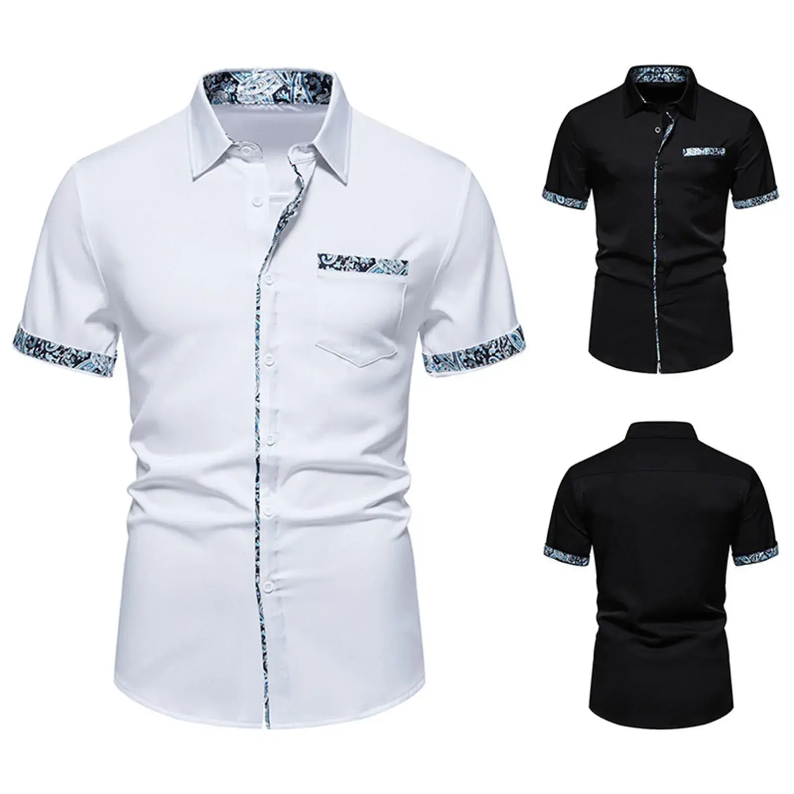Printed Shirt for Man Fashion Casual Cardigan Chest Pocket Turndown Collar Short Sleeve Summer Male Blouse Thin Tops Camisas WHooHoo