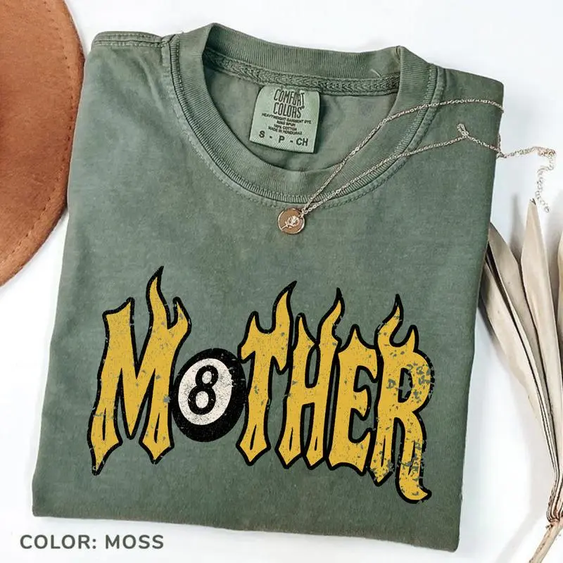 5. Comfort Colors Mother Tee Trendy 8 Ball Mother Lucky Mama Tshirt Vintage Flames Rad Mom Birthday Gift Moto Edgy Grunge Aesthetic Streetwear