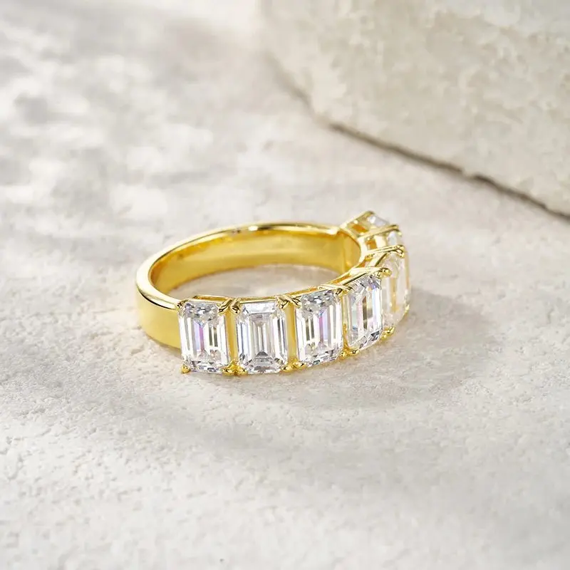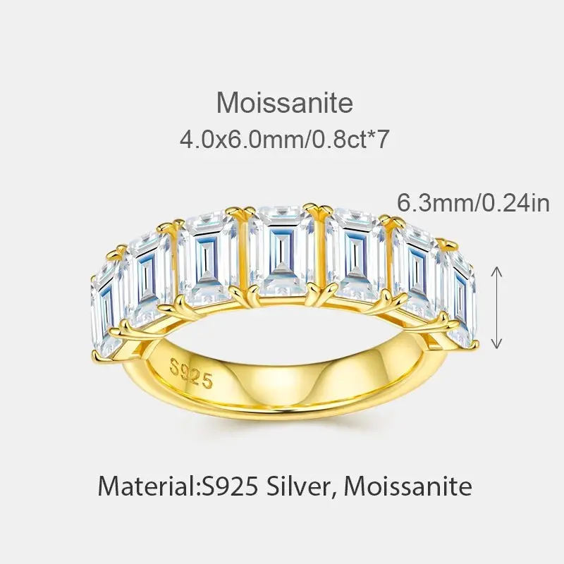 Moissanite Ring – GRA Certified Emerald Cut Eternity Ring in S925 Silver with 18K Gold Plating
