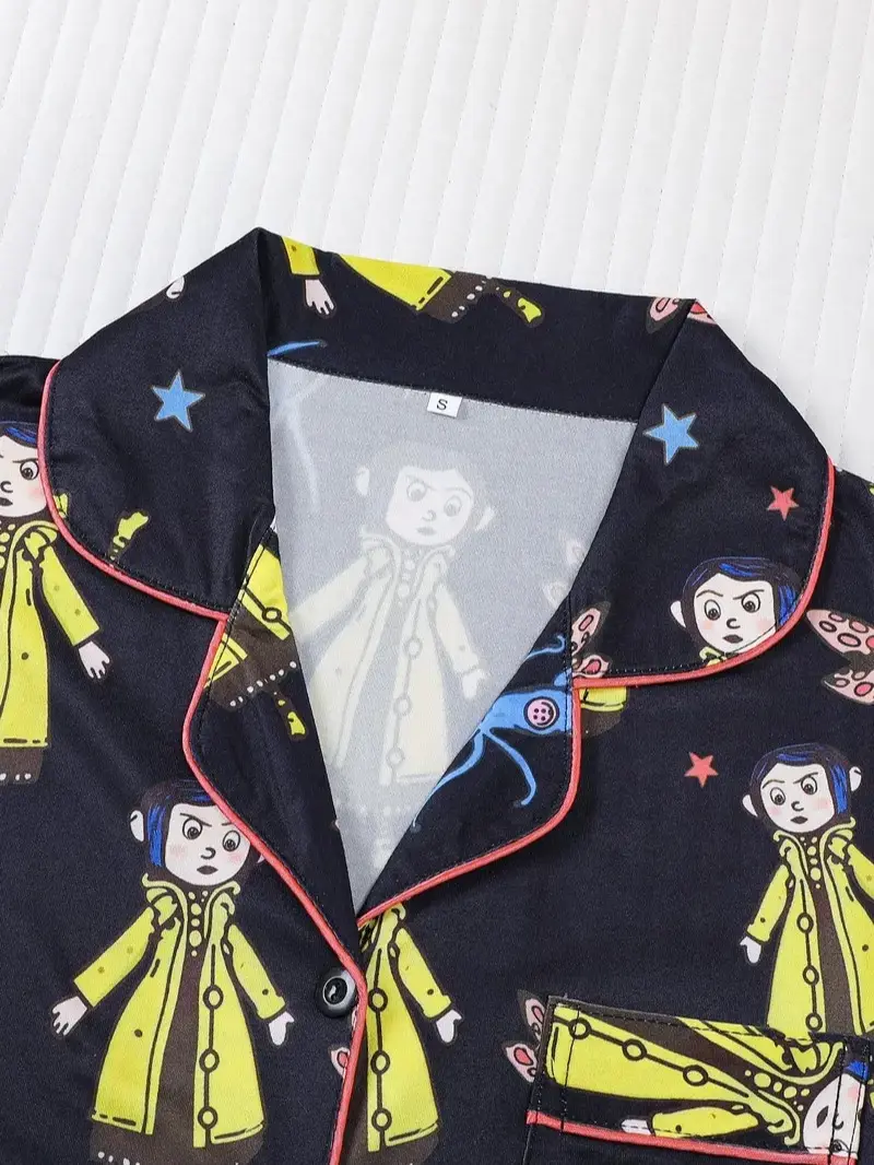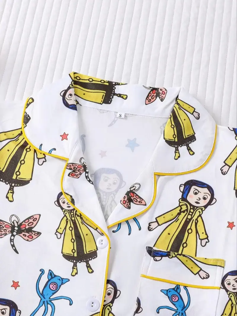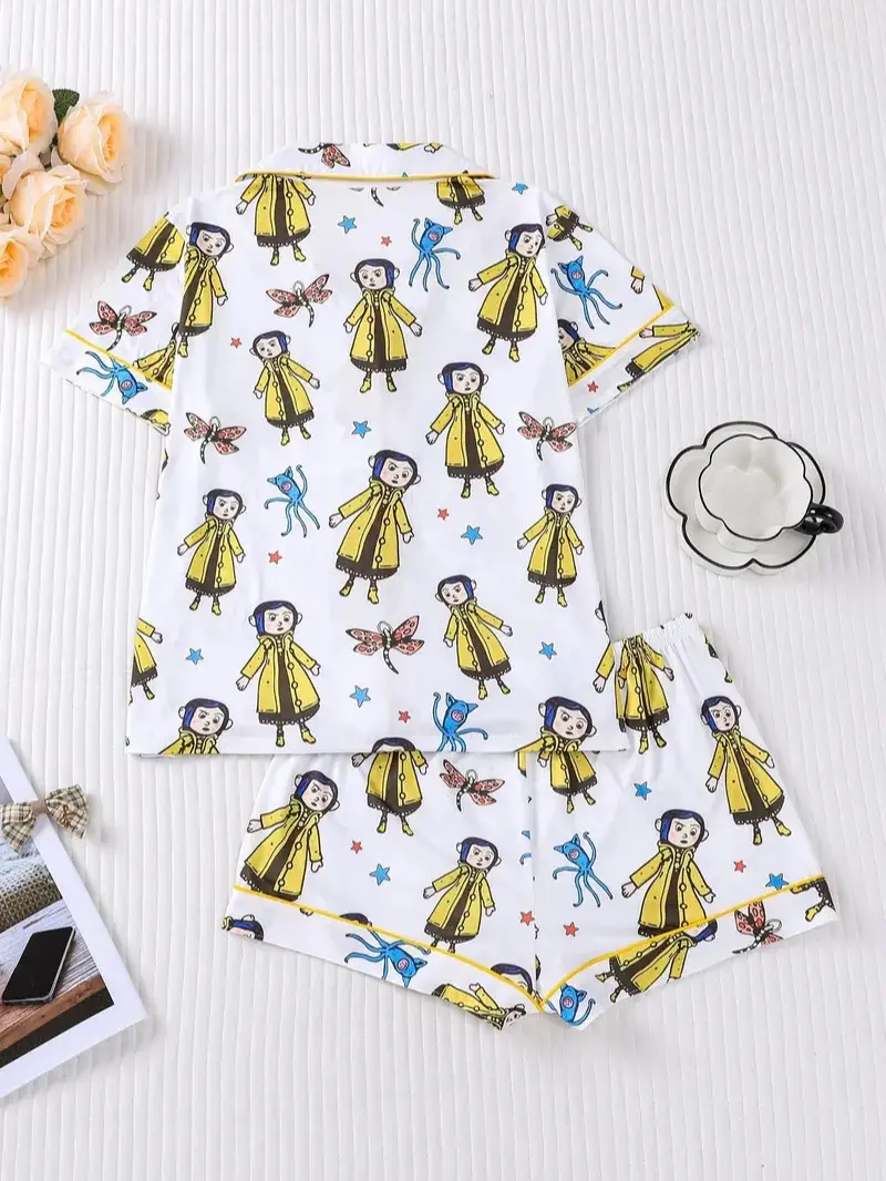 Women’s Monkey Print Pajama Set – Short Sleeve Button-Up Top & Elastic Waist Shorts, Soft Comfortable Sleepwear