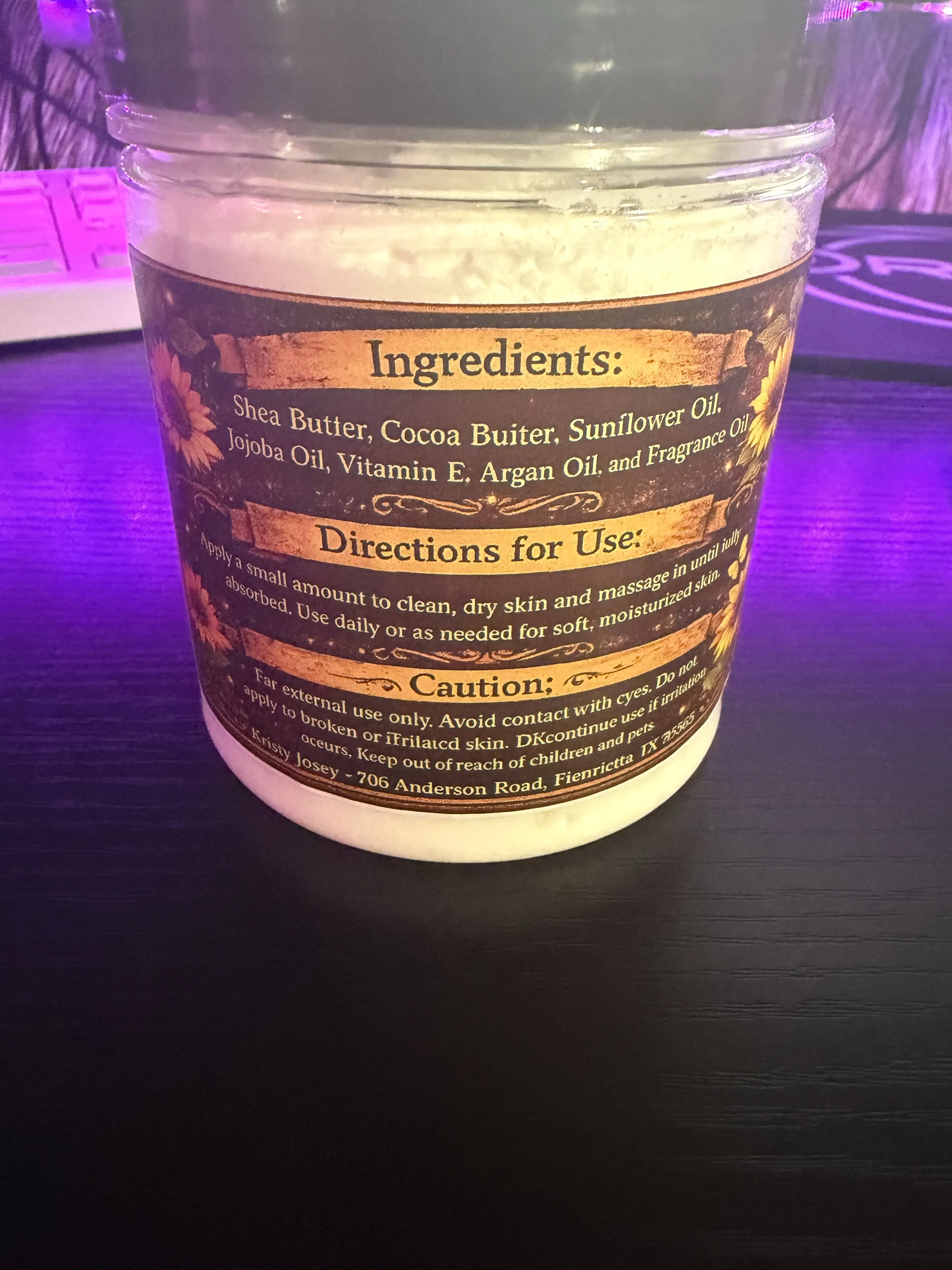 Treat your skin to rich, vellasting moisture with our handmade body butter. Made with nourishing oils and butters, this creamy formula melts into the skin to leave it feeling soft, smooth, and deeply hydrated without feeling heavy. Perfect for everyday use, our body butter adds a little luxury to your routine while wrapping your skin in beautiful fragrance.