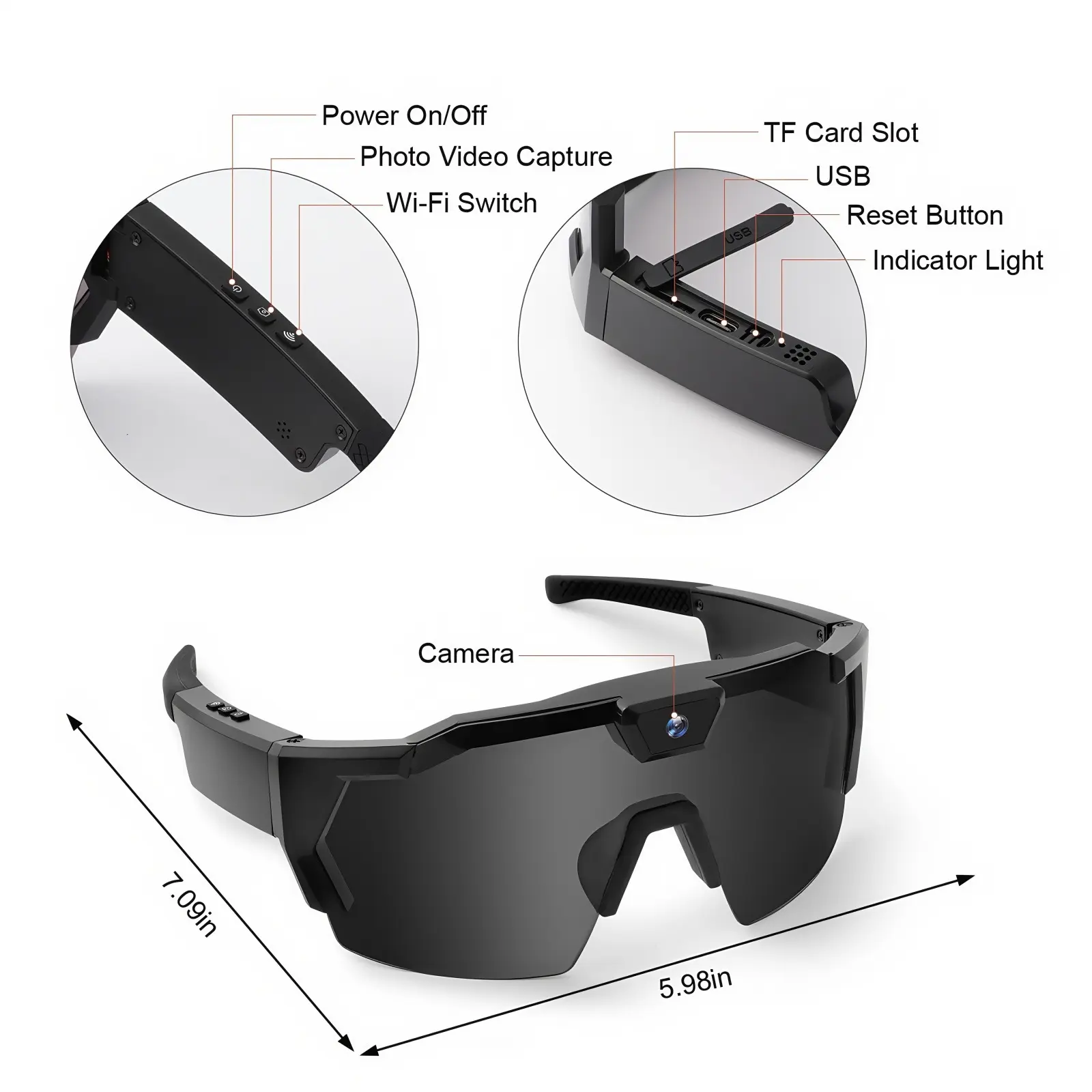Experience the freedom of true first-person perspective shooting with our smart high definition camera glasses.