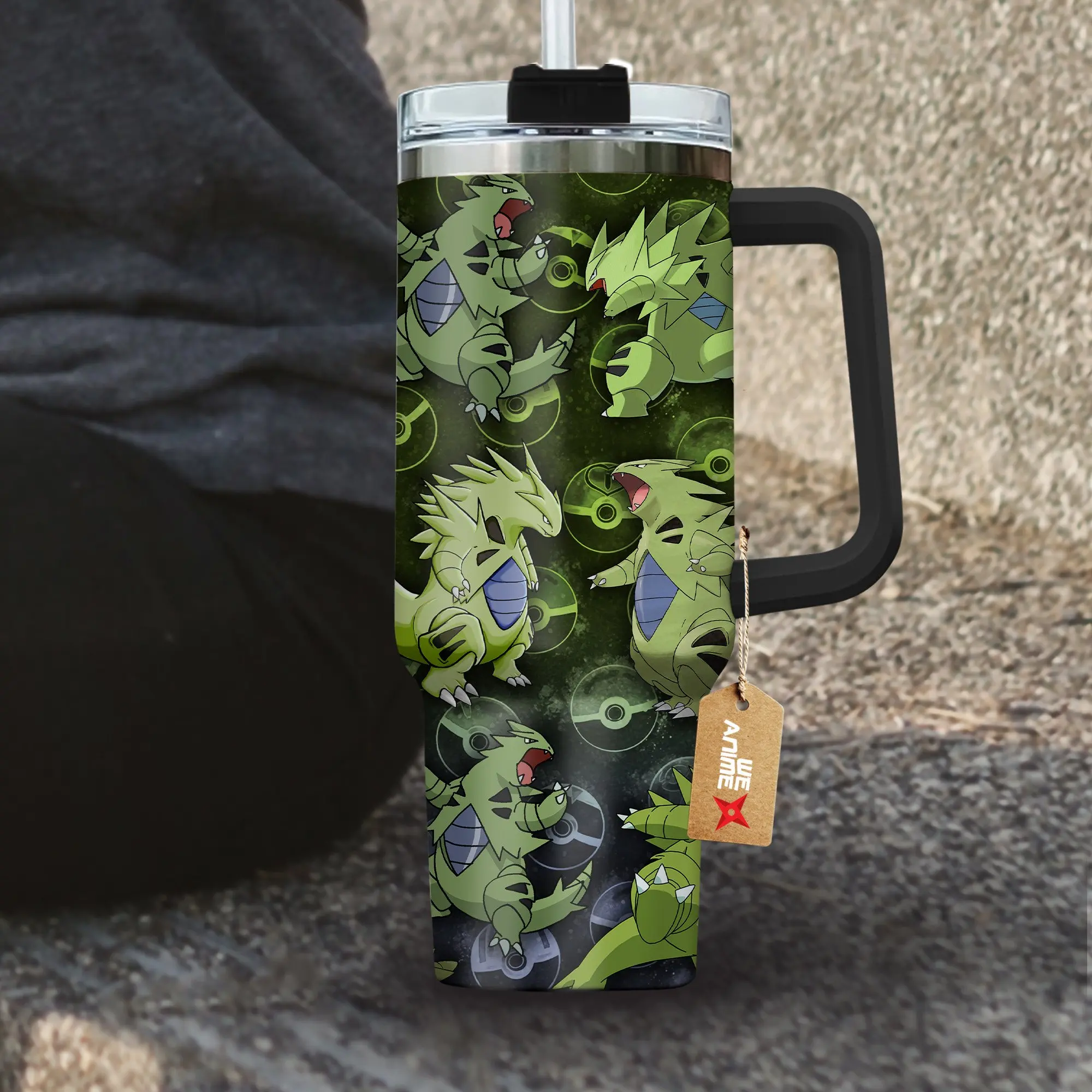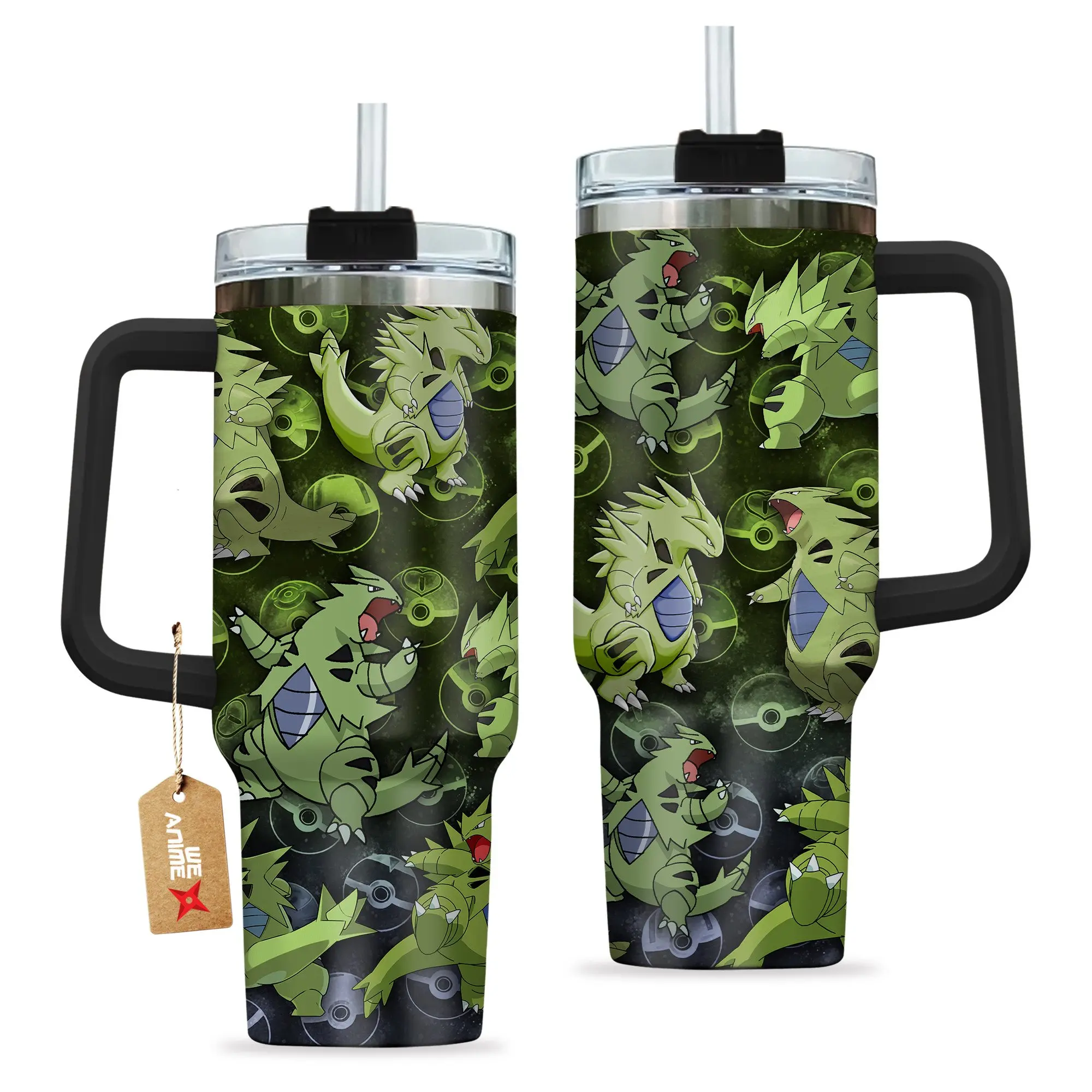 5. STORMMECH- Tyranitar 40oz Handle Tumbler – PKM Stainless Steel Travel Mug, Anime Inspired Vacuum Insulated Cup, Large Iced Coffee Tumbler, Manga Fighter Drinkware, Otaku Gift for Him Her