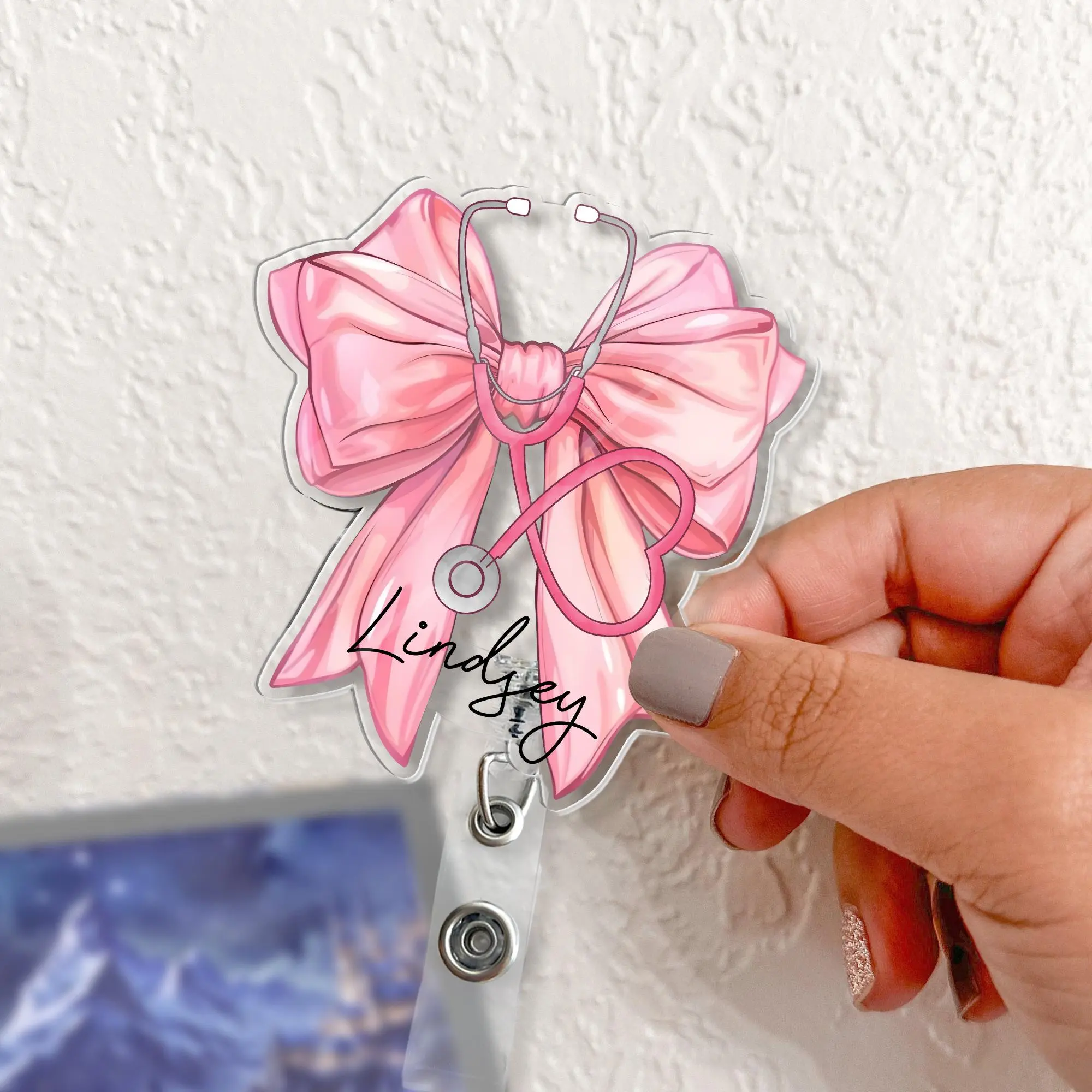 Personalized Stethoscope Bow Badge Reel, Custom Name Nurse Stethoscope Badge, Nursing Life, Coquette Medical Id Holder, Nurse Day Gift