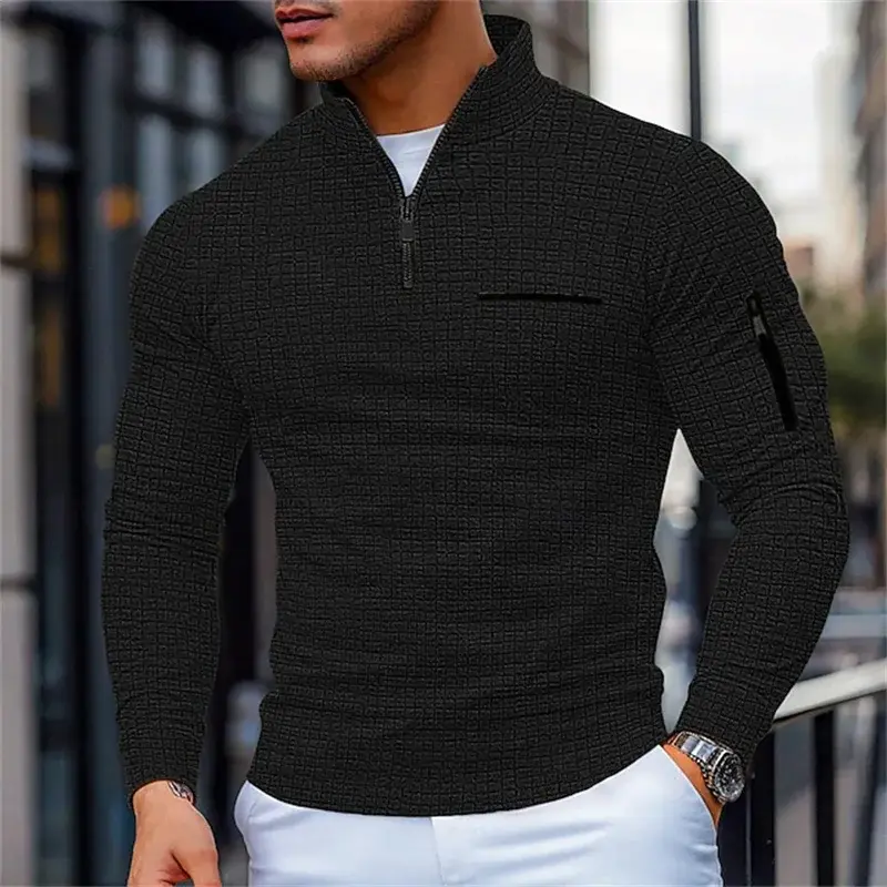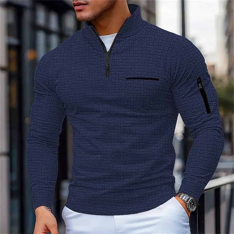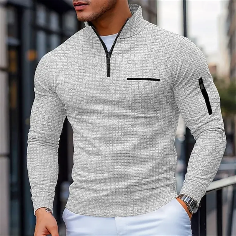 Men'S Casual Long-Sleeve Polo Shirt Pullover Sweatshirt Spring and Autumn Outdoor Sports Zipper Men'S Shirt Sweatshirt Top NONE