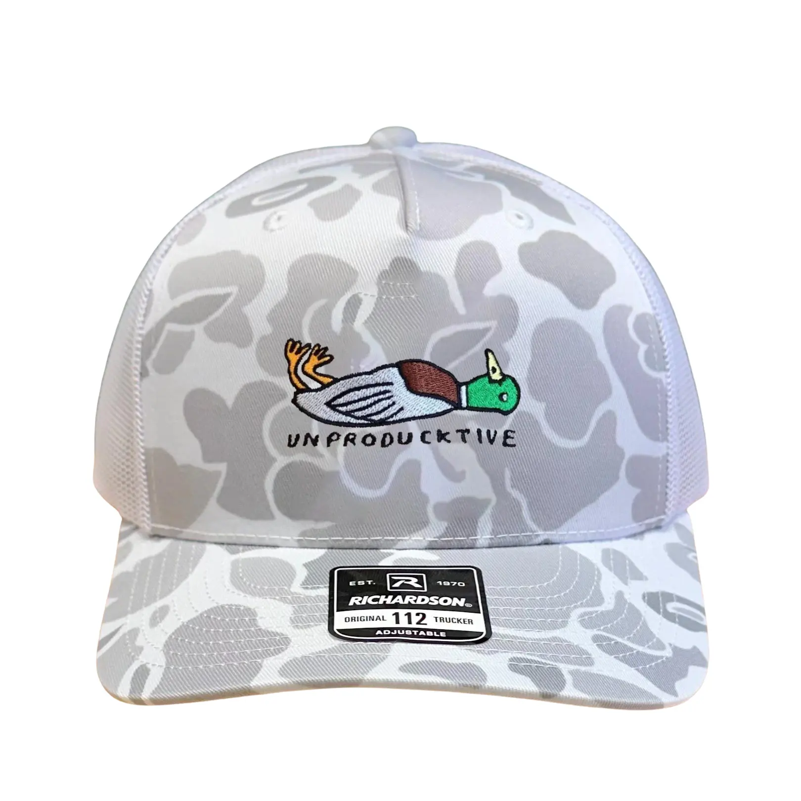 Unproductive Duck Hat – Funny Trucker Cap Richardson 112 Camo Embroidered Hat