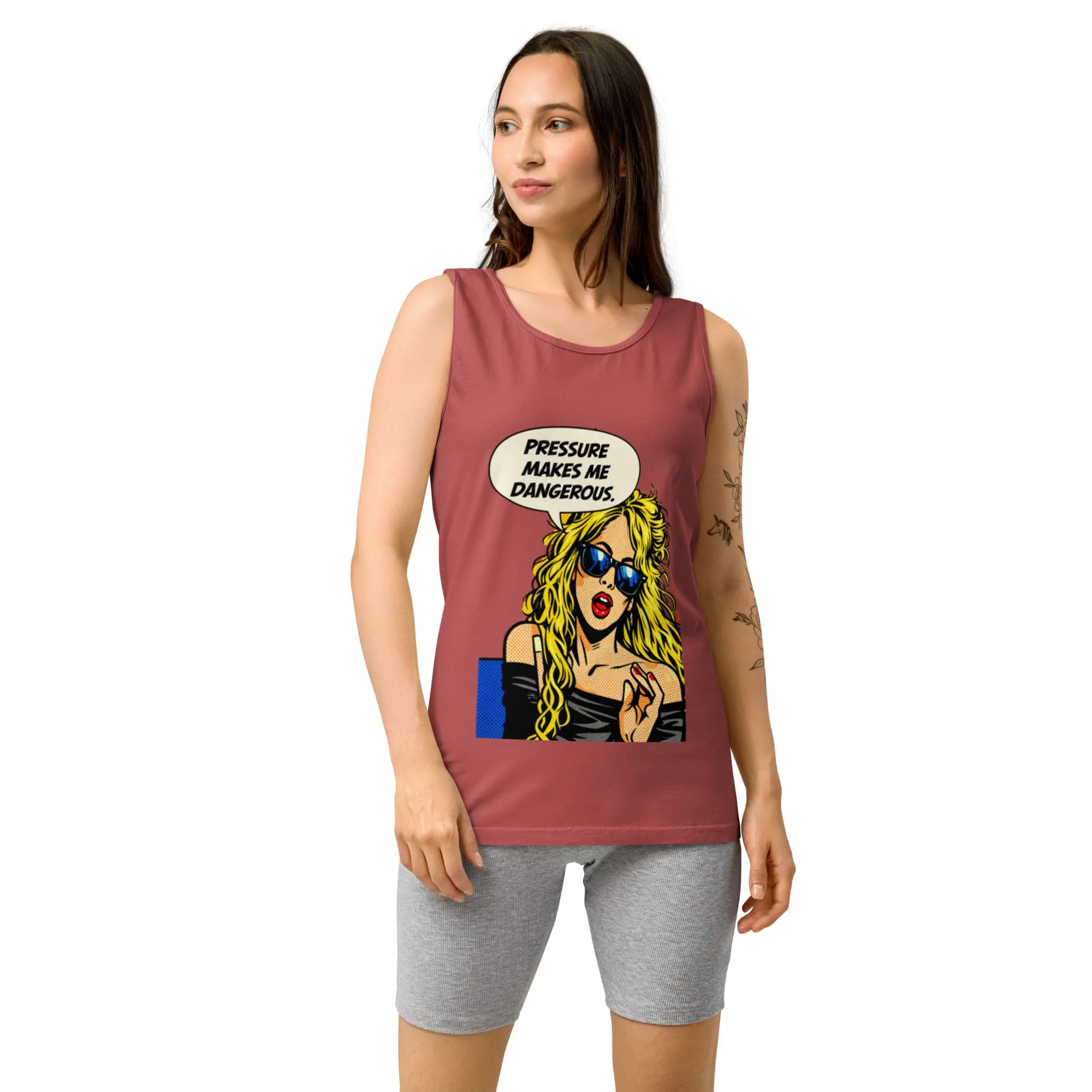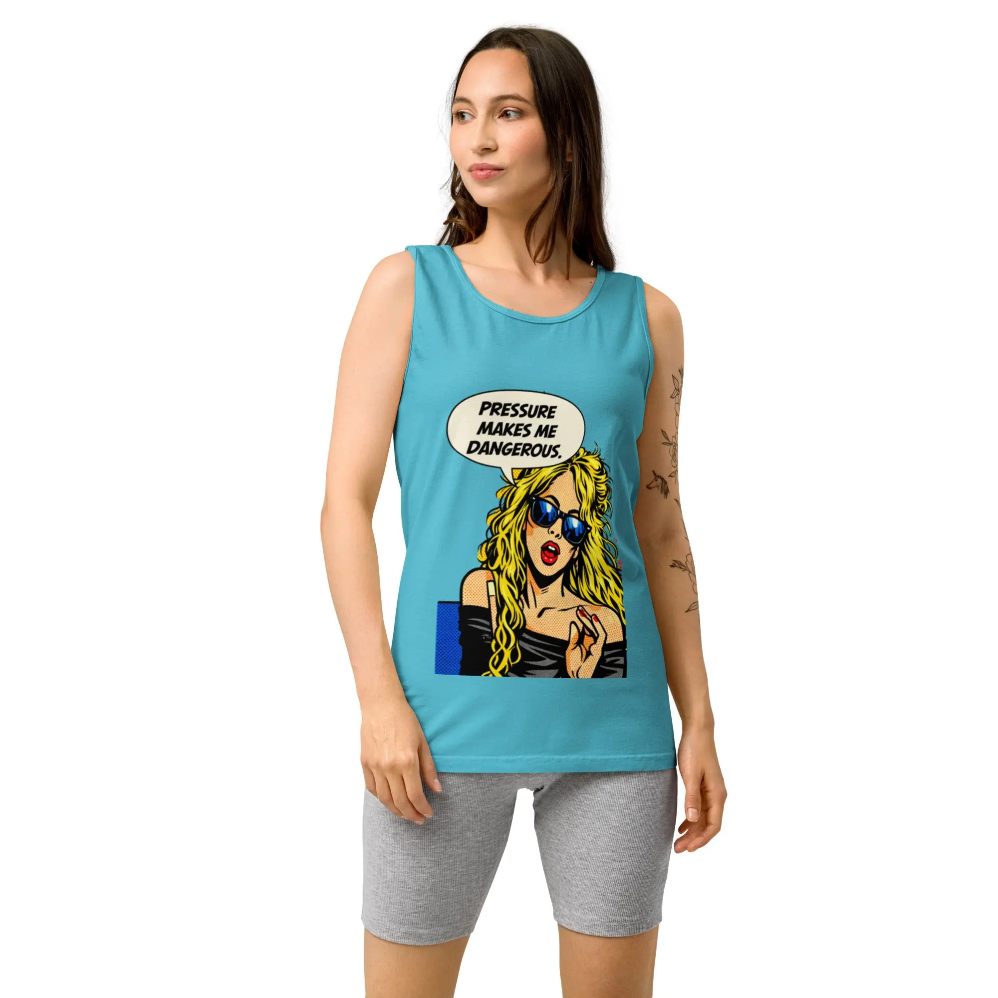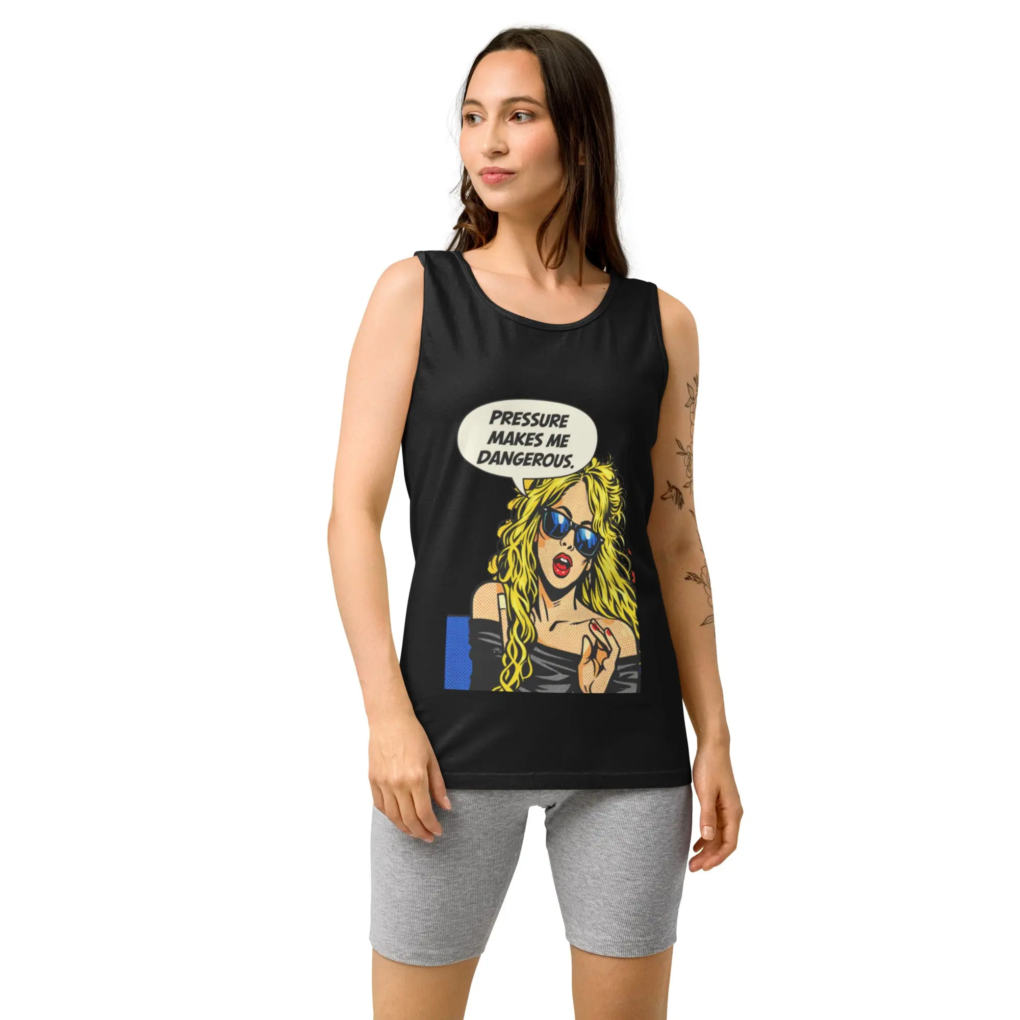 Featuring edgy pop-art attitude and streetwear energy, the phrase “Pressure make me dangerous” delivers raw confidence and fearless personality. Designed for women who turn intensity into power and aren’t afraid of their edge.