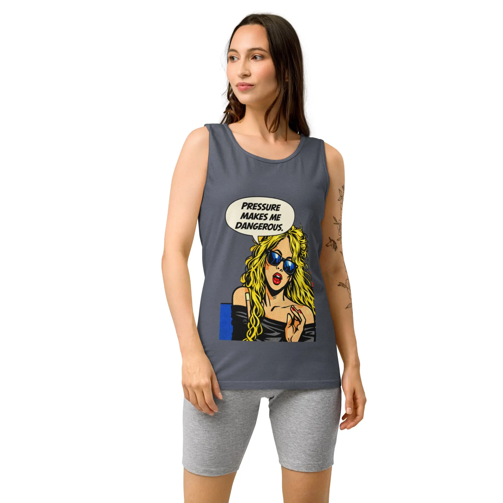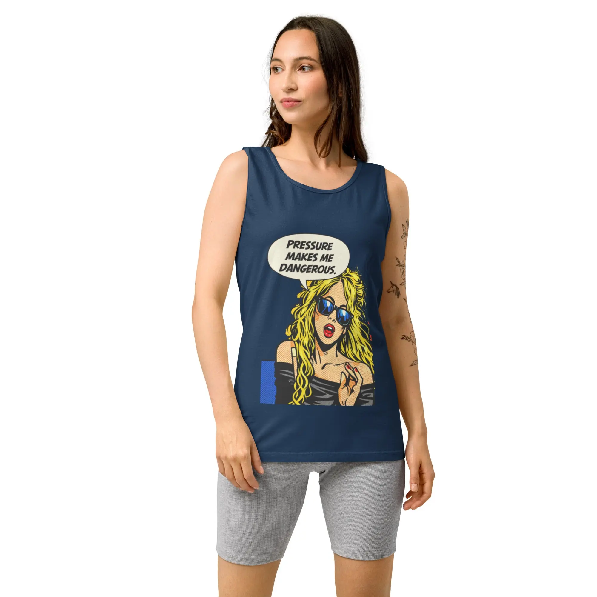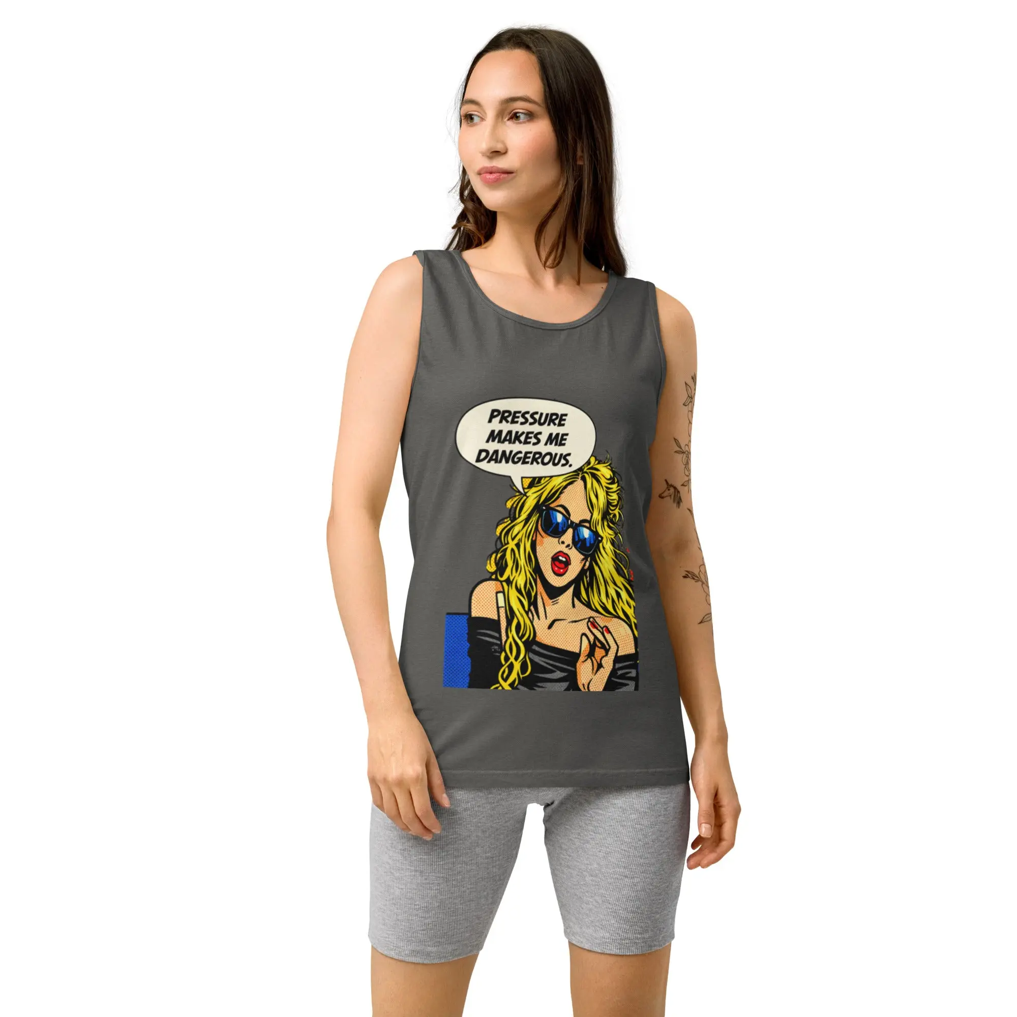 Featuring edgy pop-art attitude and streetwear energy, the phrase “Pressure make me dangerous” delivers raw confidence and fearless personality. Designed for women who turn intensity into power and aren’t afraid of their edge.