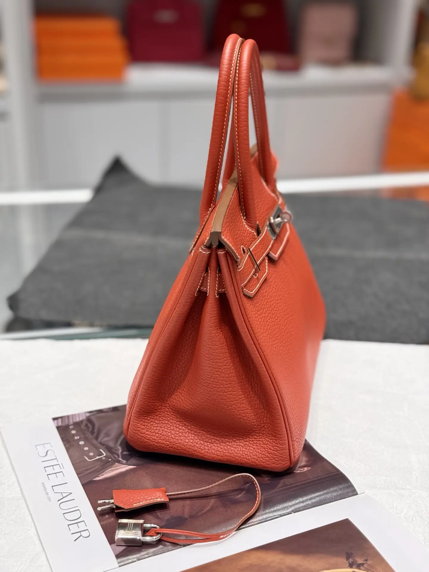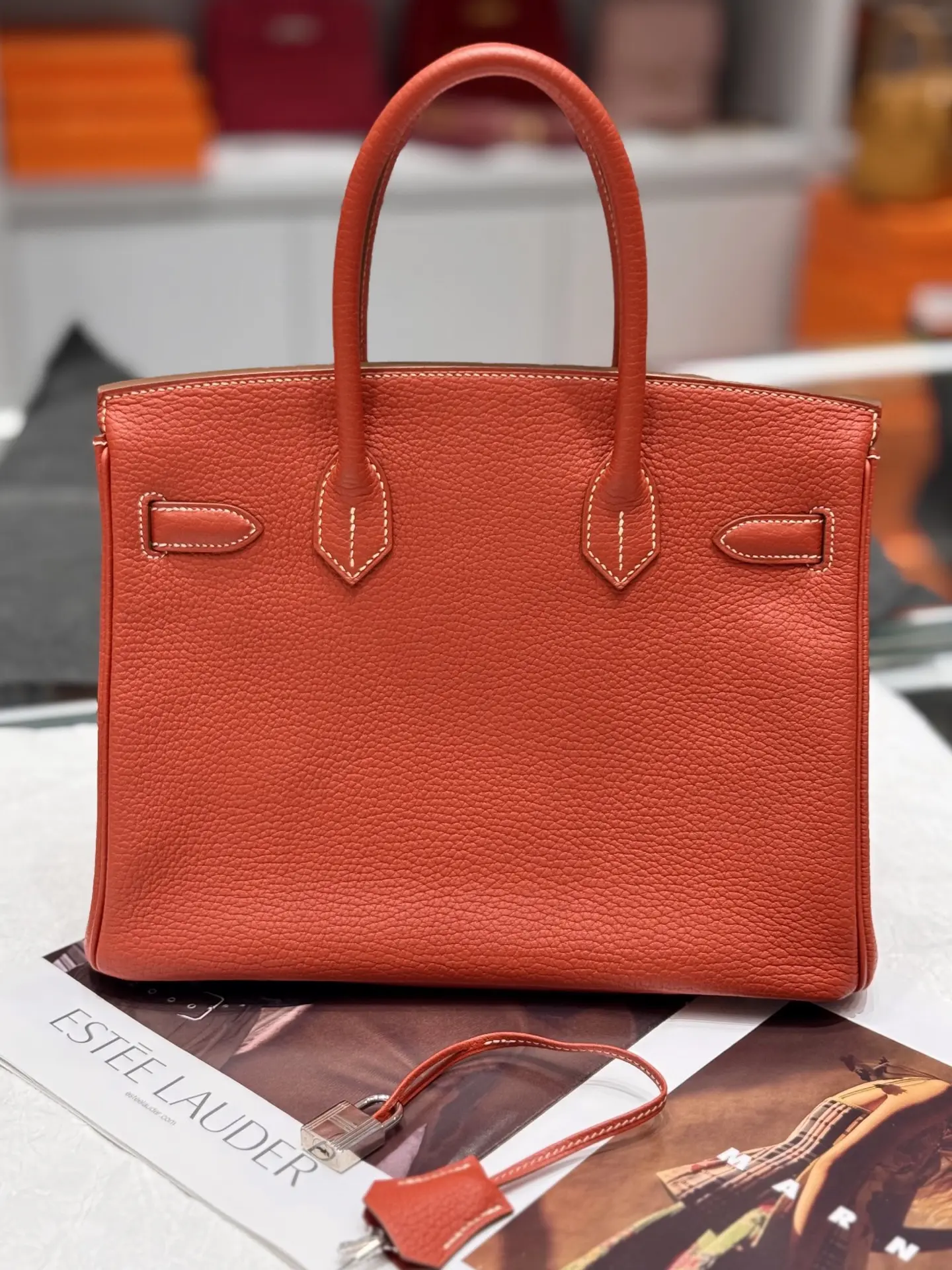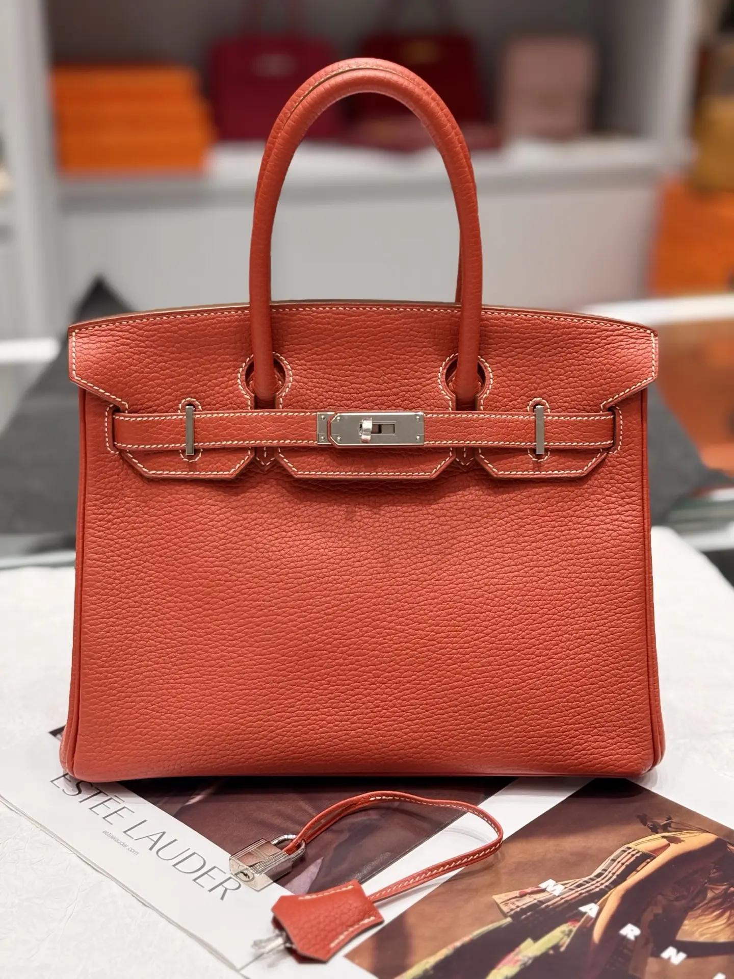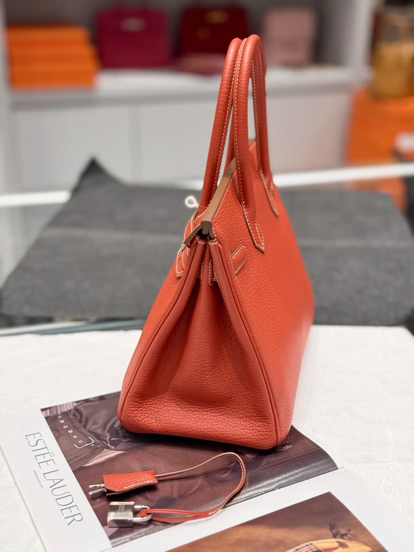 Pre-owned HERMÈS Togo Top Handle Bag Hermes Birkin30 Sanguine Silver Tone Hardware 97631823