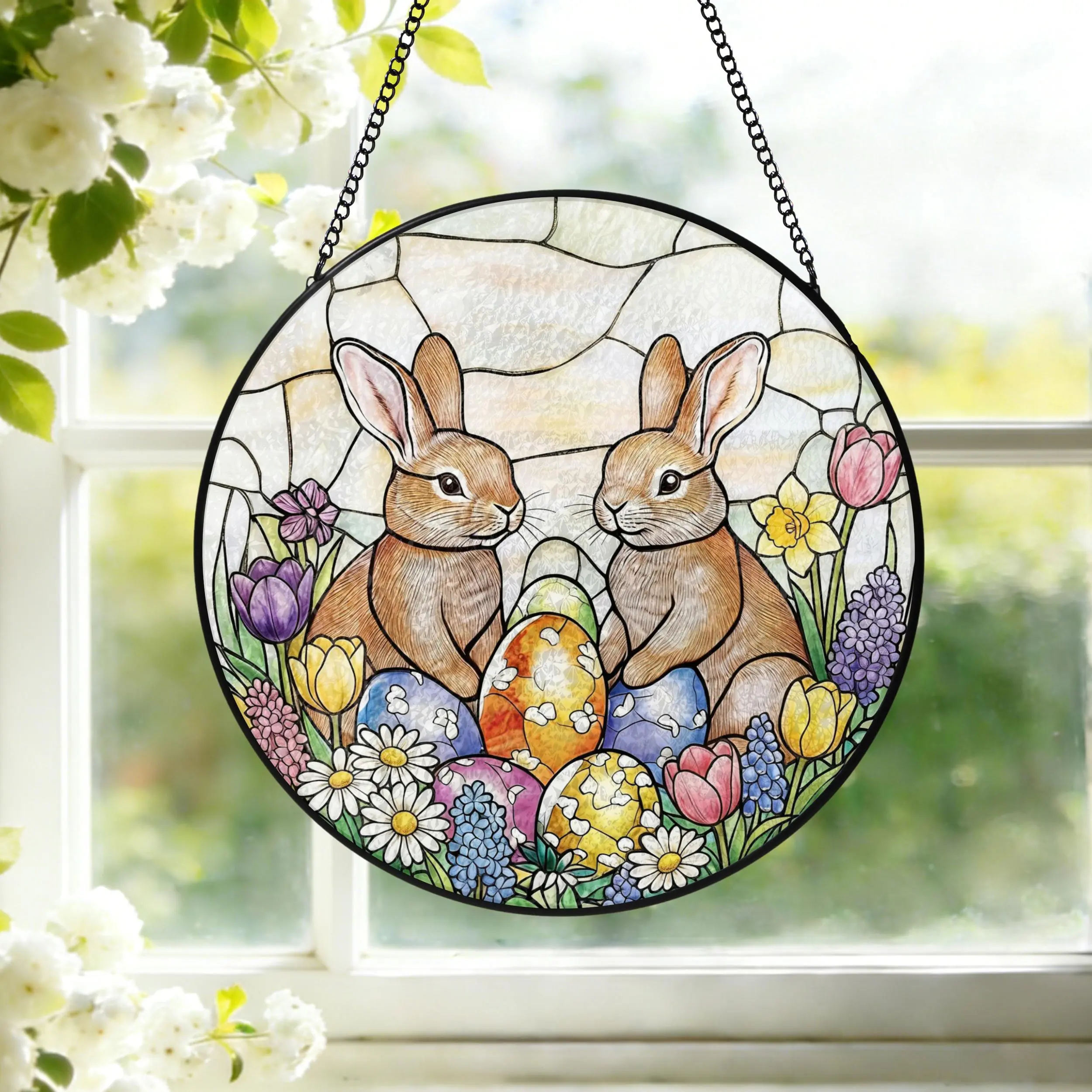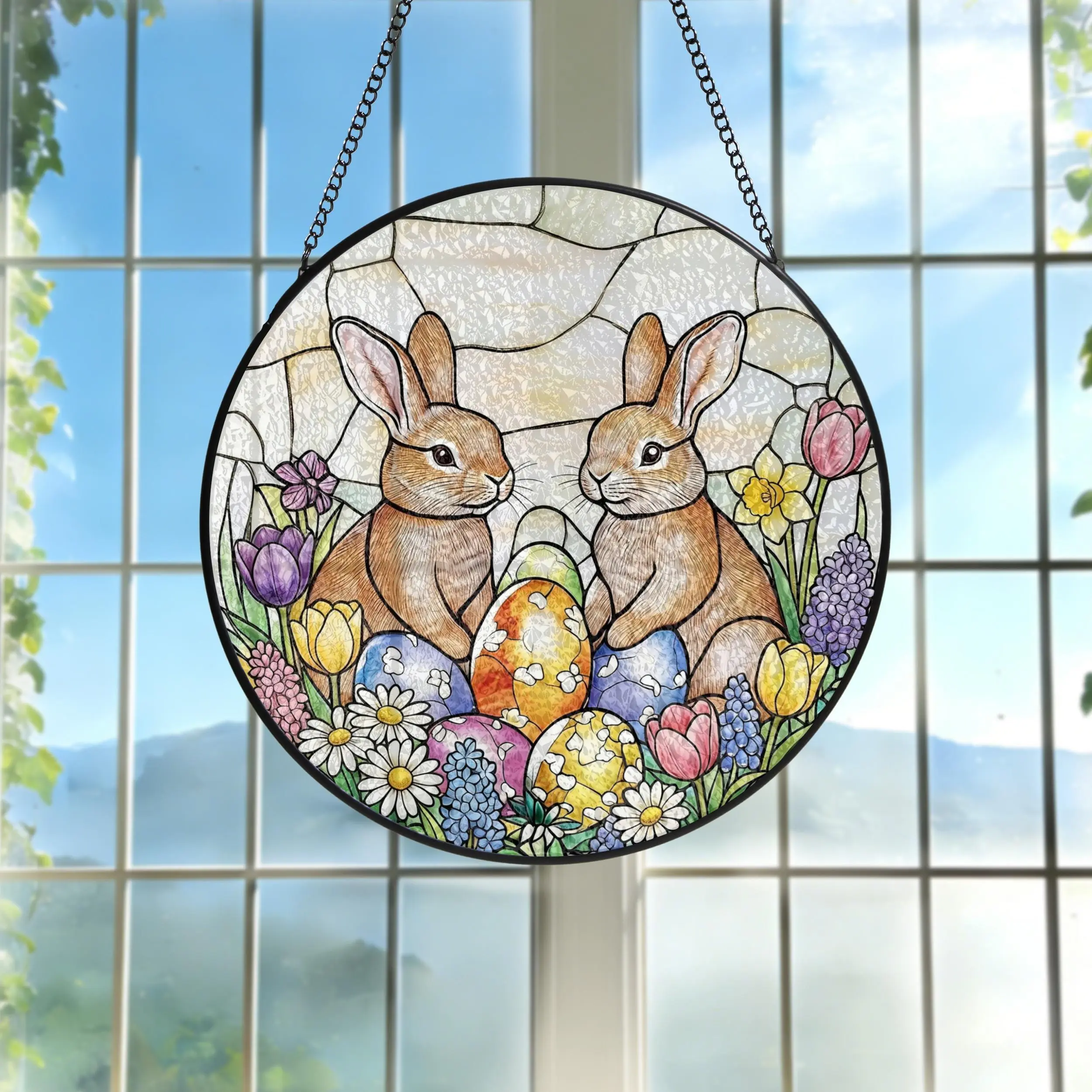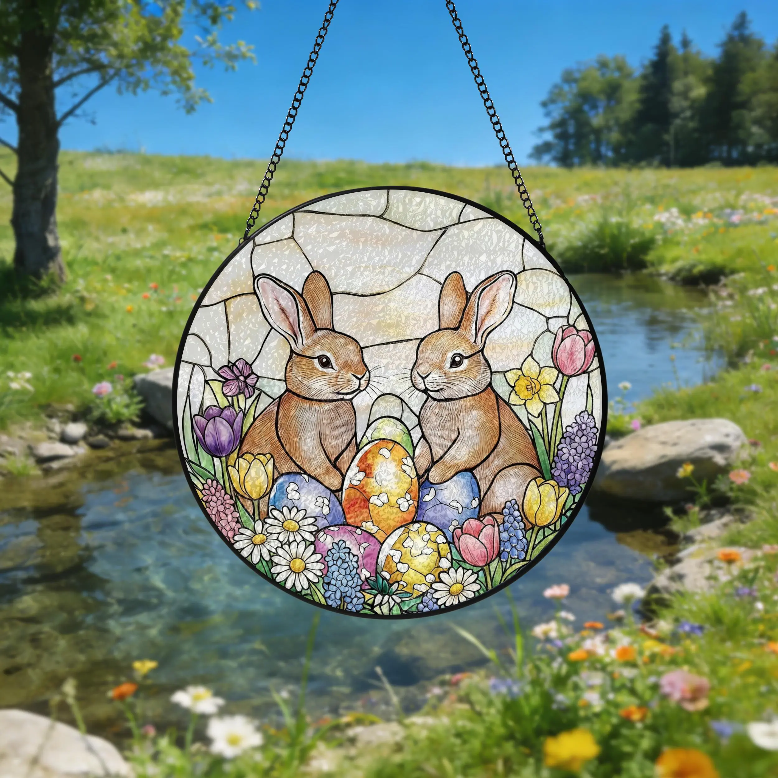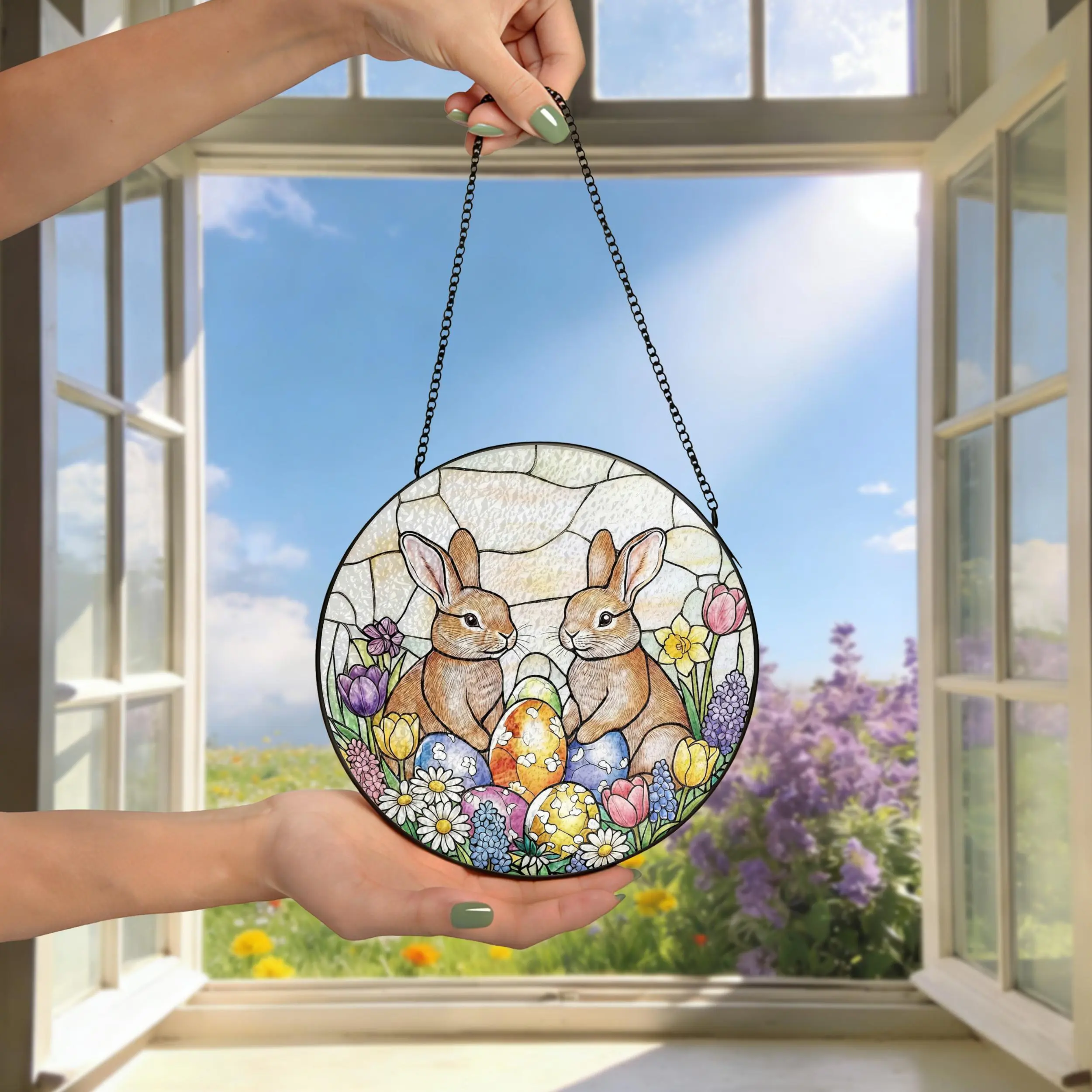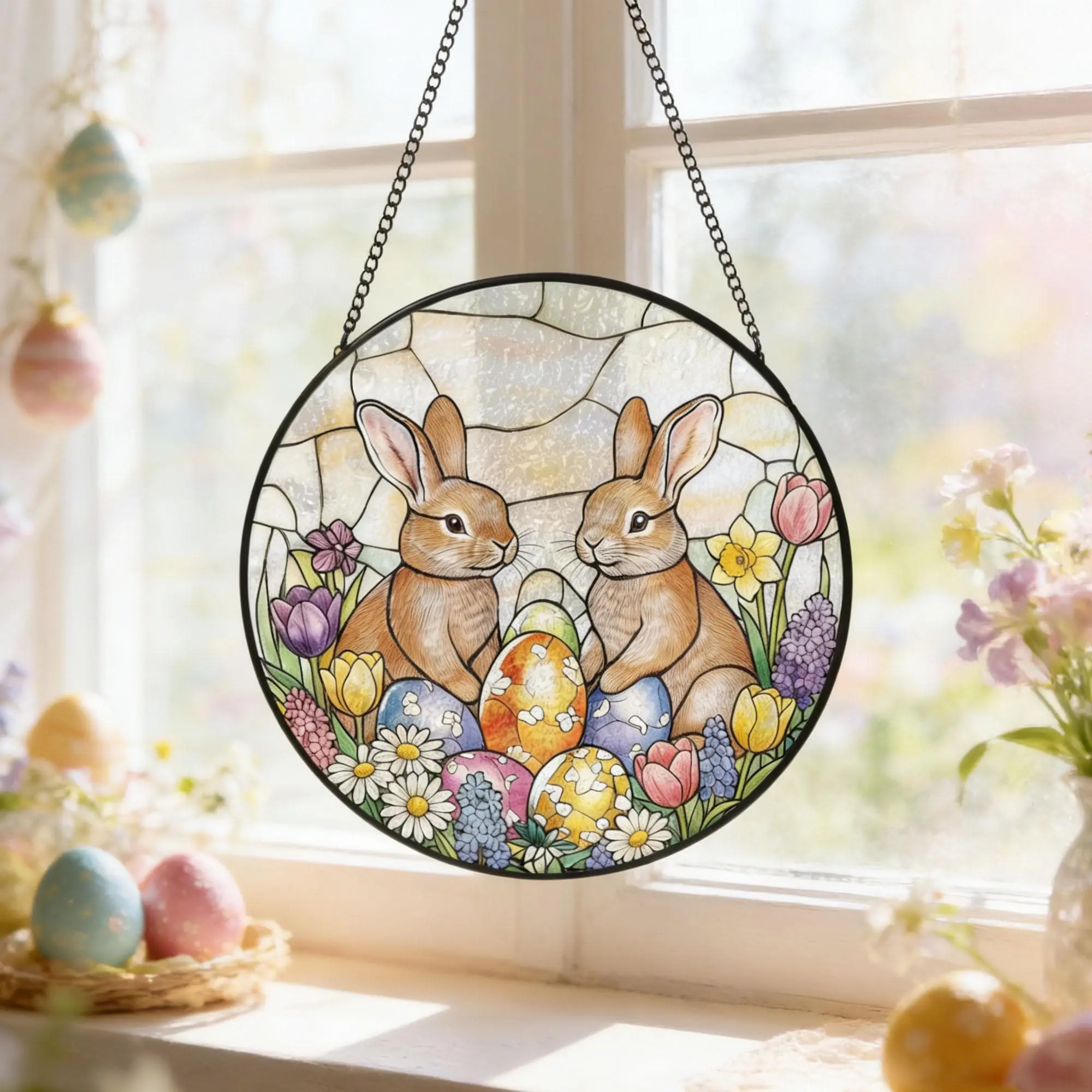 Crafted from fade-resistant acrylic, this window hanging catches the sunlight beautifully—creating a soft, colorful glow that brightens any space. Perfect for Easter décor or year-round for bunny lovers.