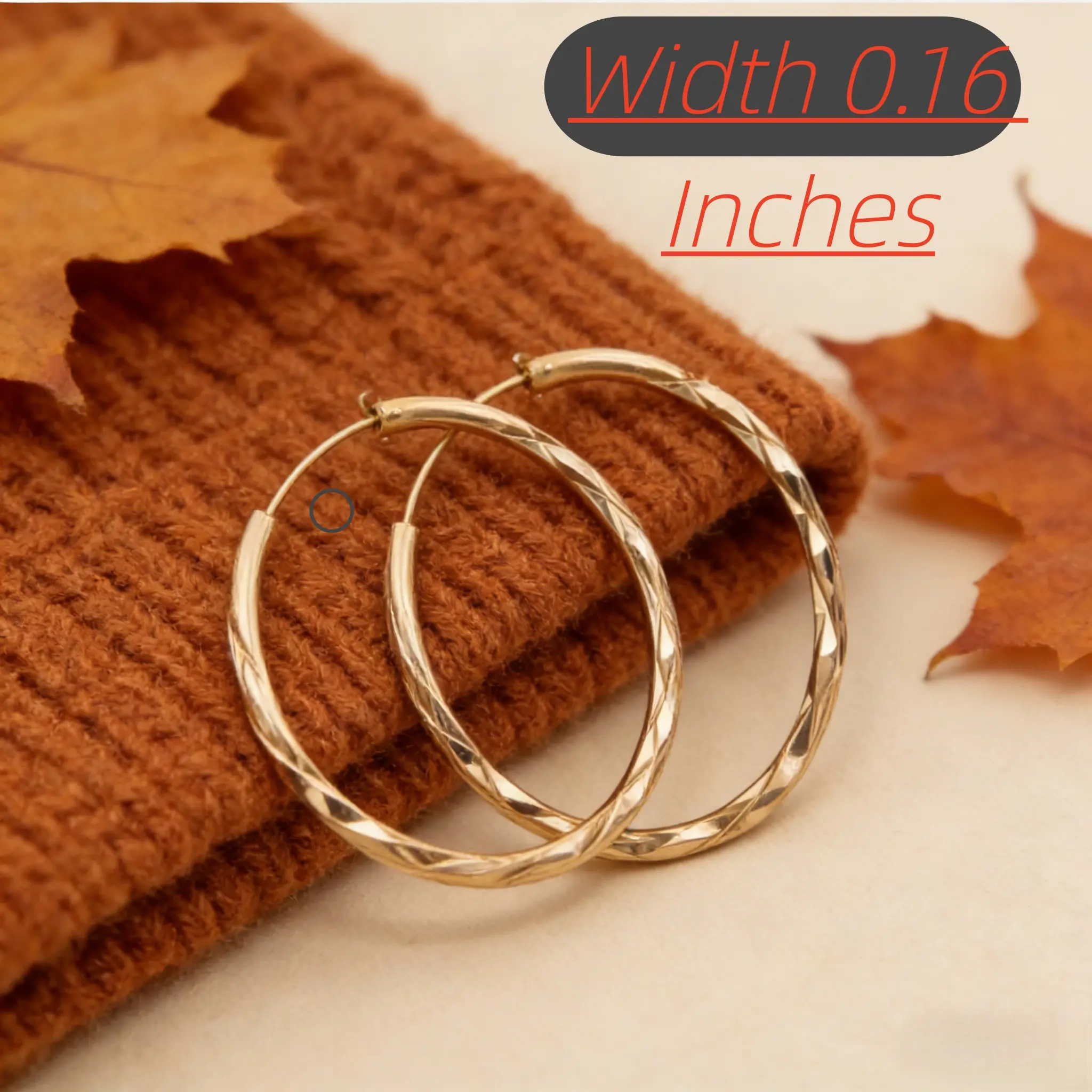 Product Name: 4MM Twisted Gold Hoop Earrings, 18K Gold Plated Diamond-Cut Hoops for Women