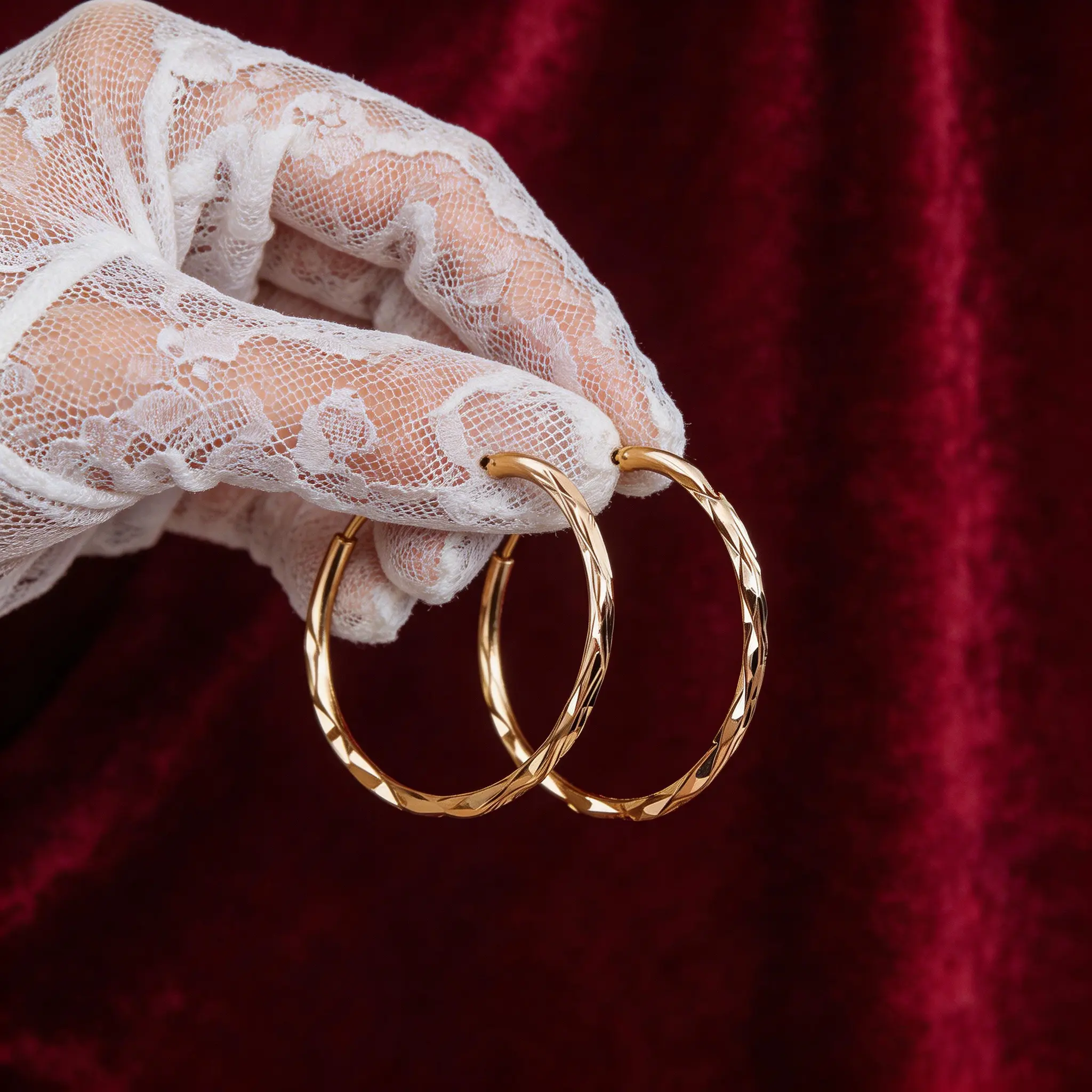 The standout twisted design features precision diamond-cut facets that sparkle with every movement, ensuring you stand out for all the right reasons. Made with premium 18K gold plating, they offer a rich, luxurious gold hue without the high cost of solid gold, while the tarnish-resistant formula keeps them looking shiny and new through daily wear, workouts, and busy days.