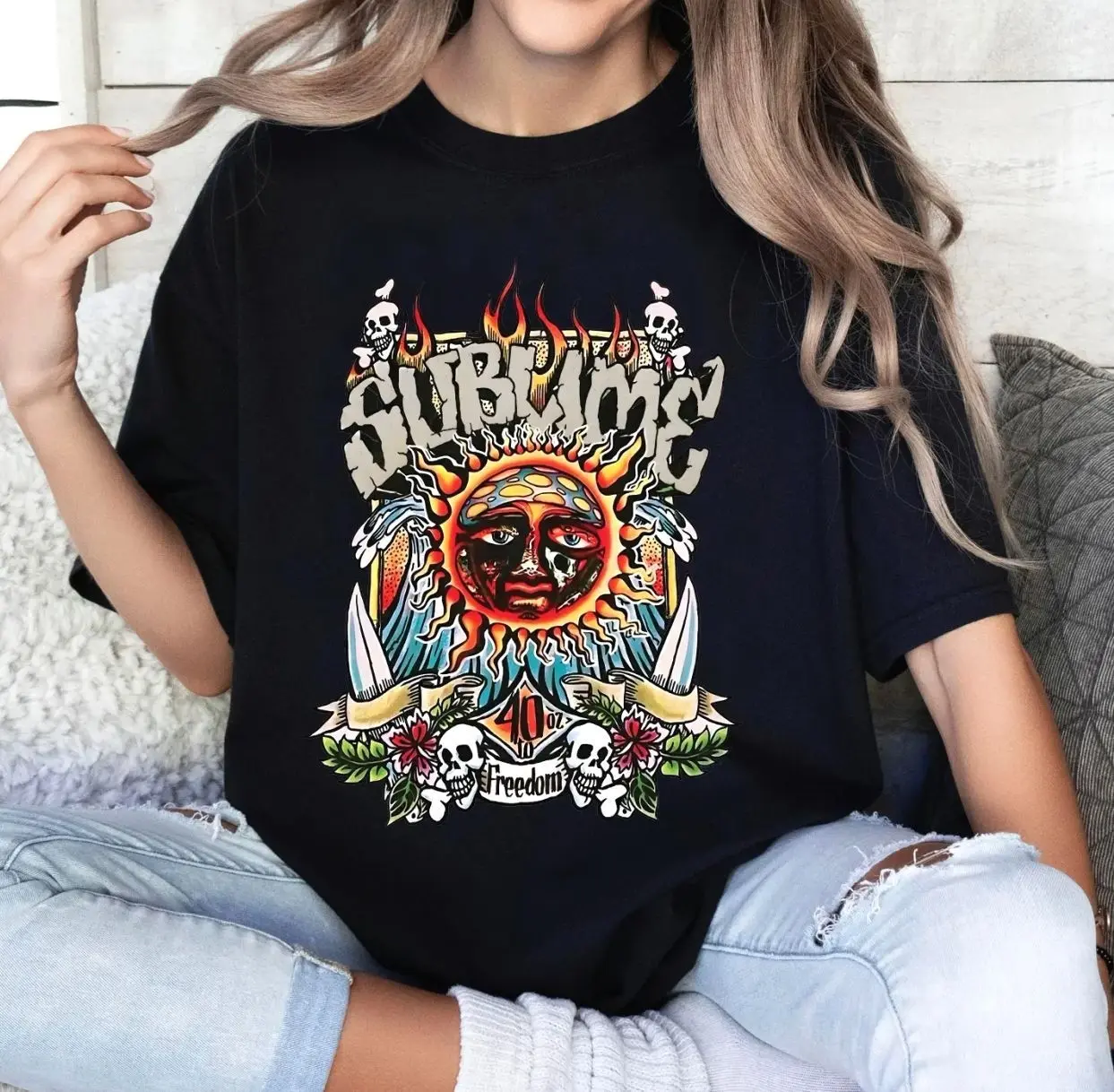 5. Sublime Graphic Crewneck Unisex T-shirt, Graphic Band Tee Rock Music, Vintage 40oz To Freedom Tshirt