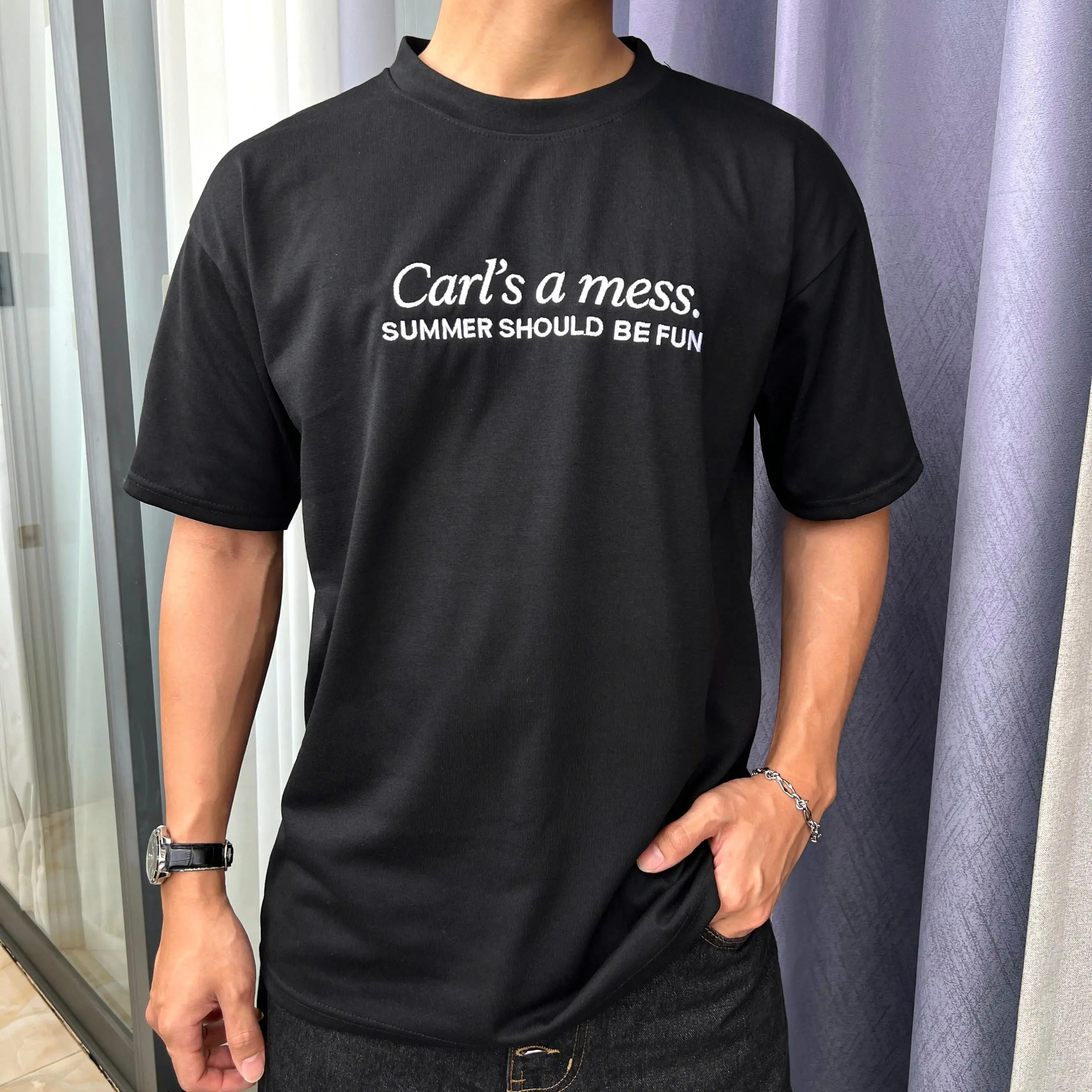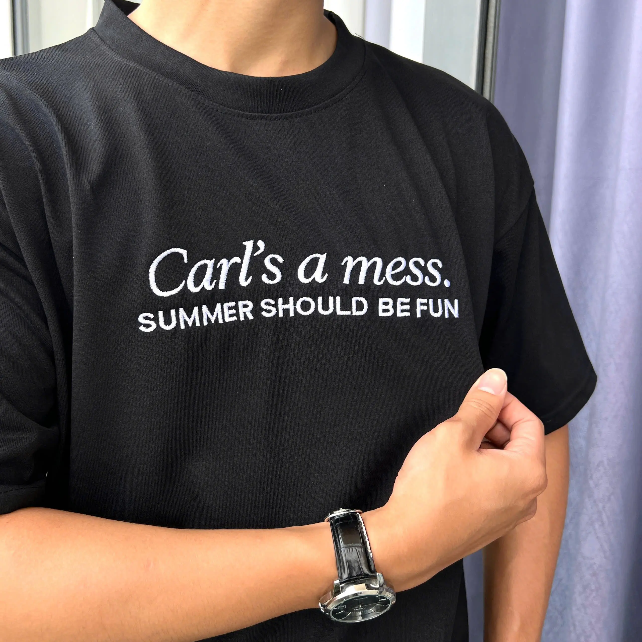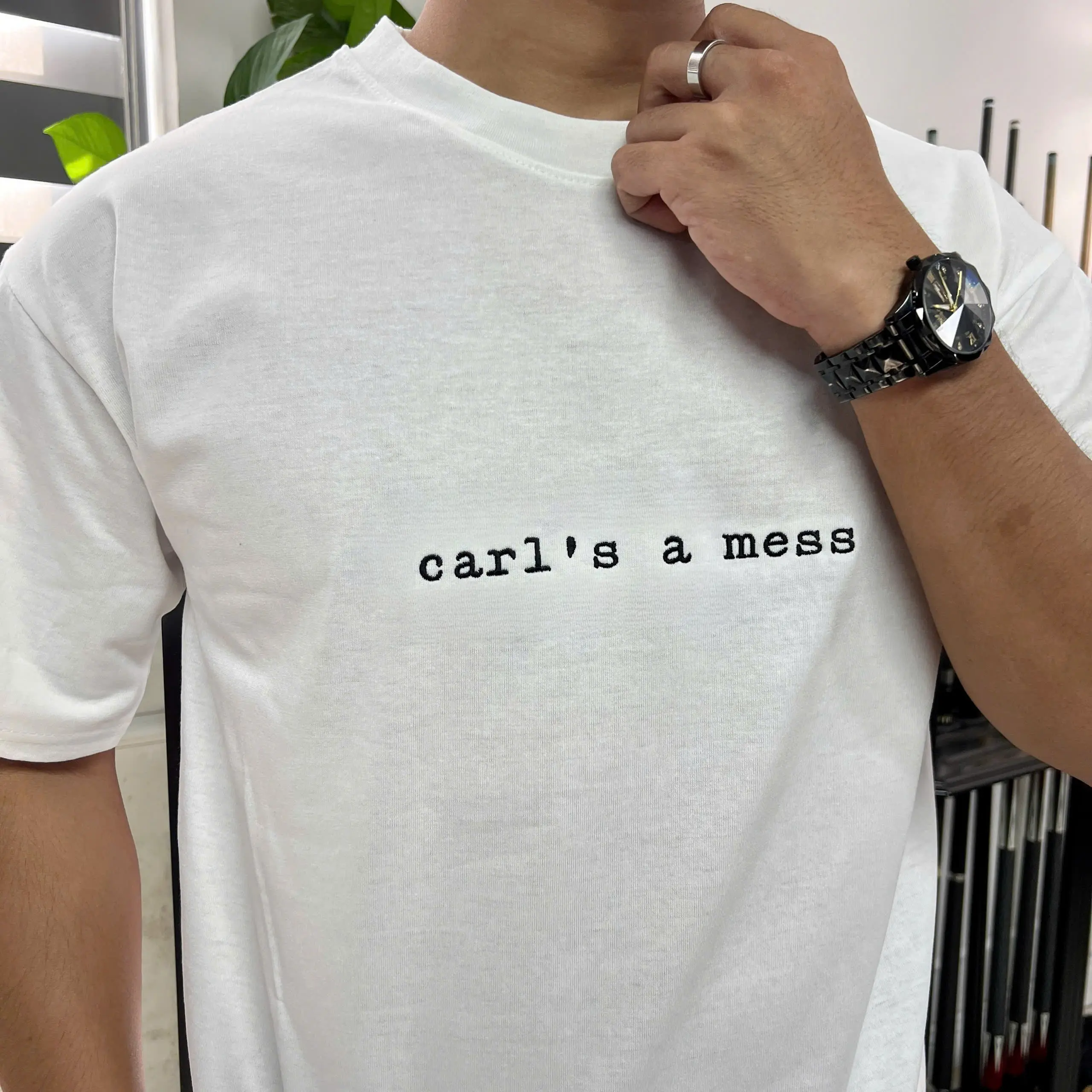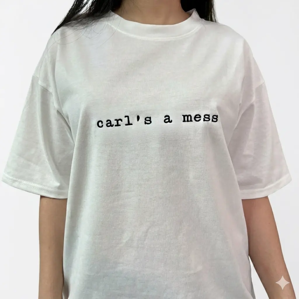 The shirt that literally sums up my life right now. Carl’s a mess, and honestly, same. High-quality embroidery for high-quality chaos.