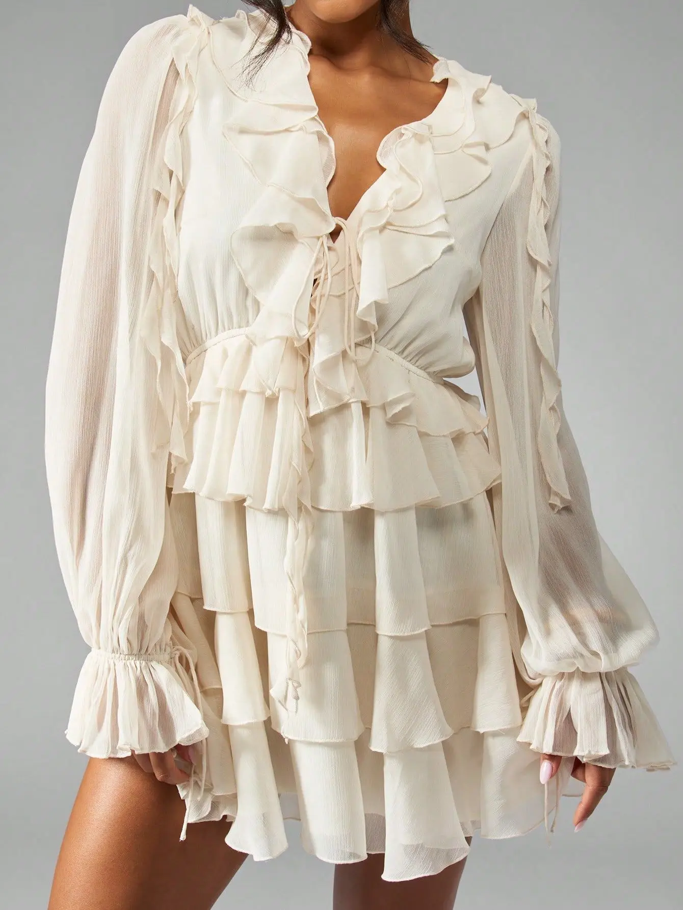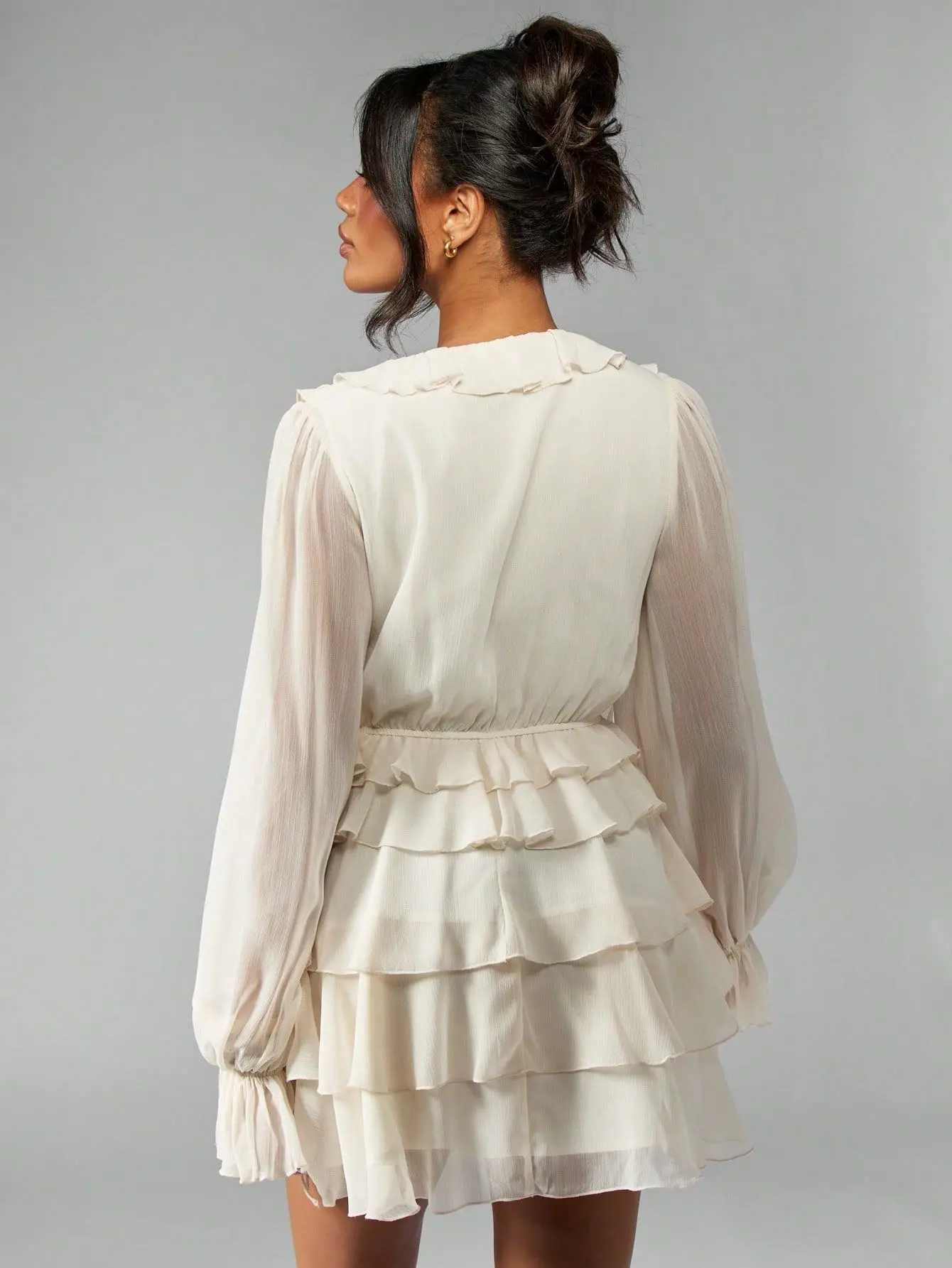 Elegant Chiffon Tiered Ruffle Flowy Mini Dress