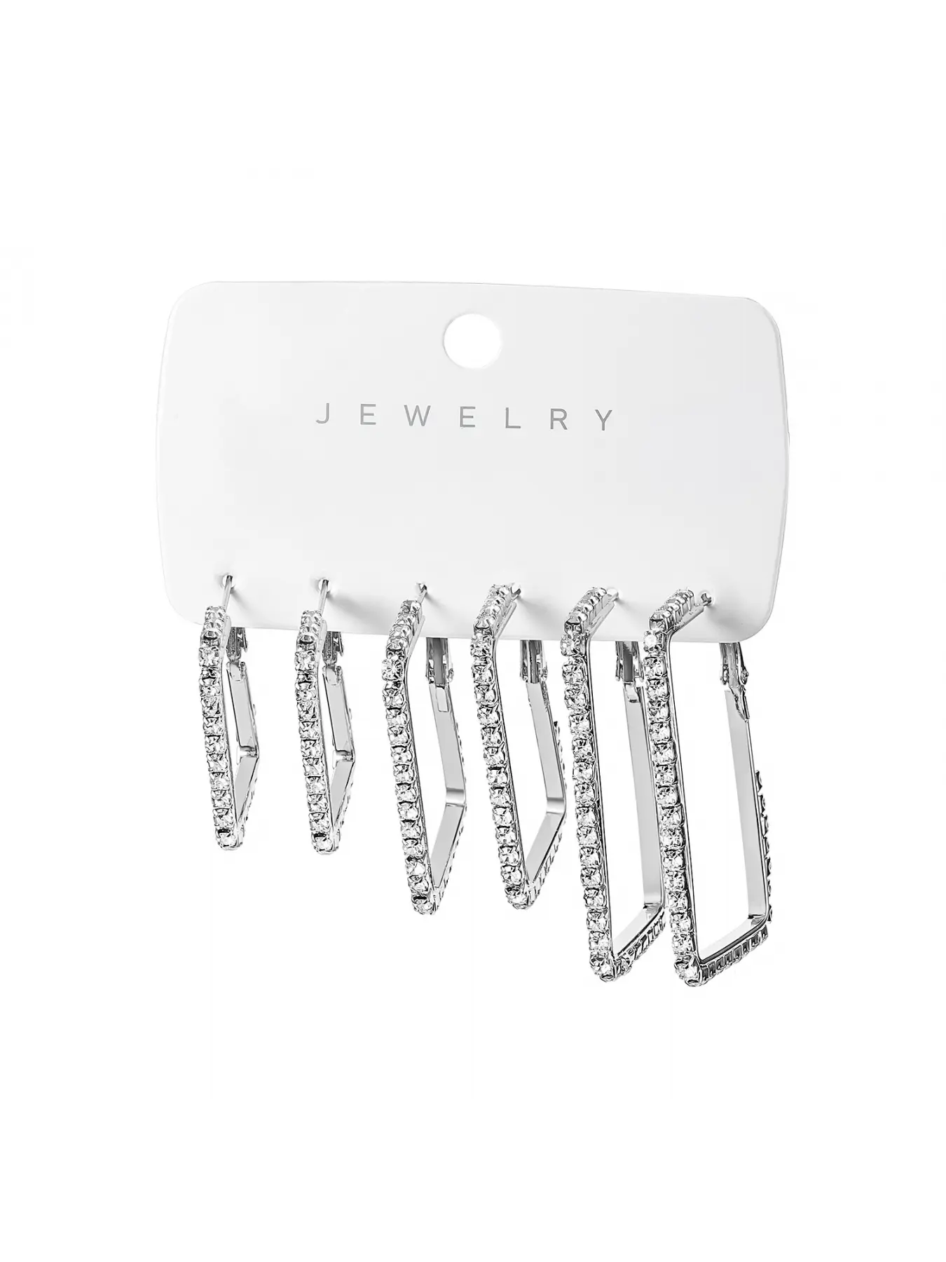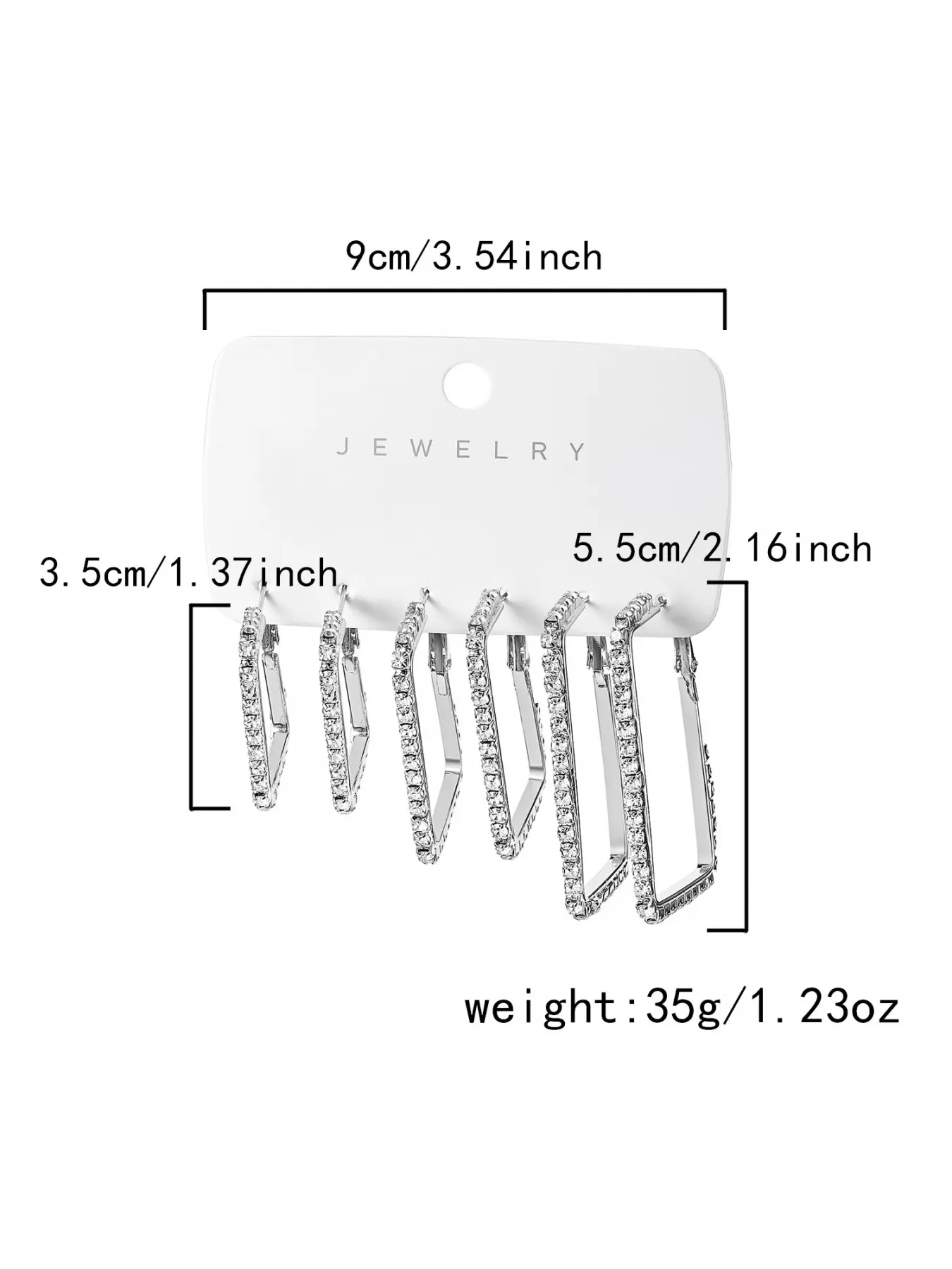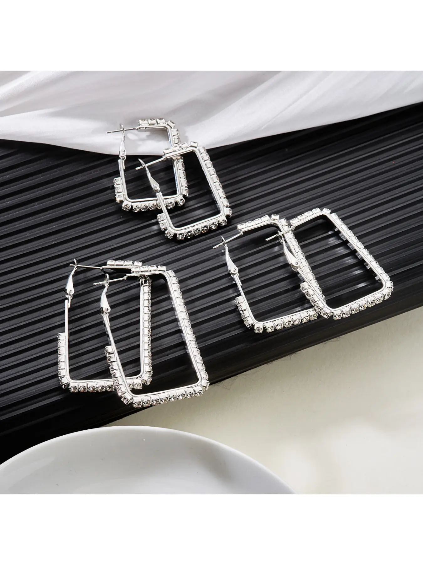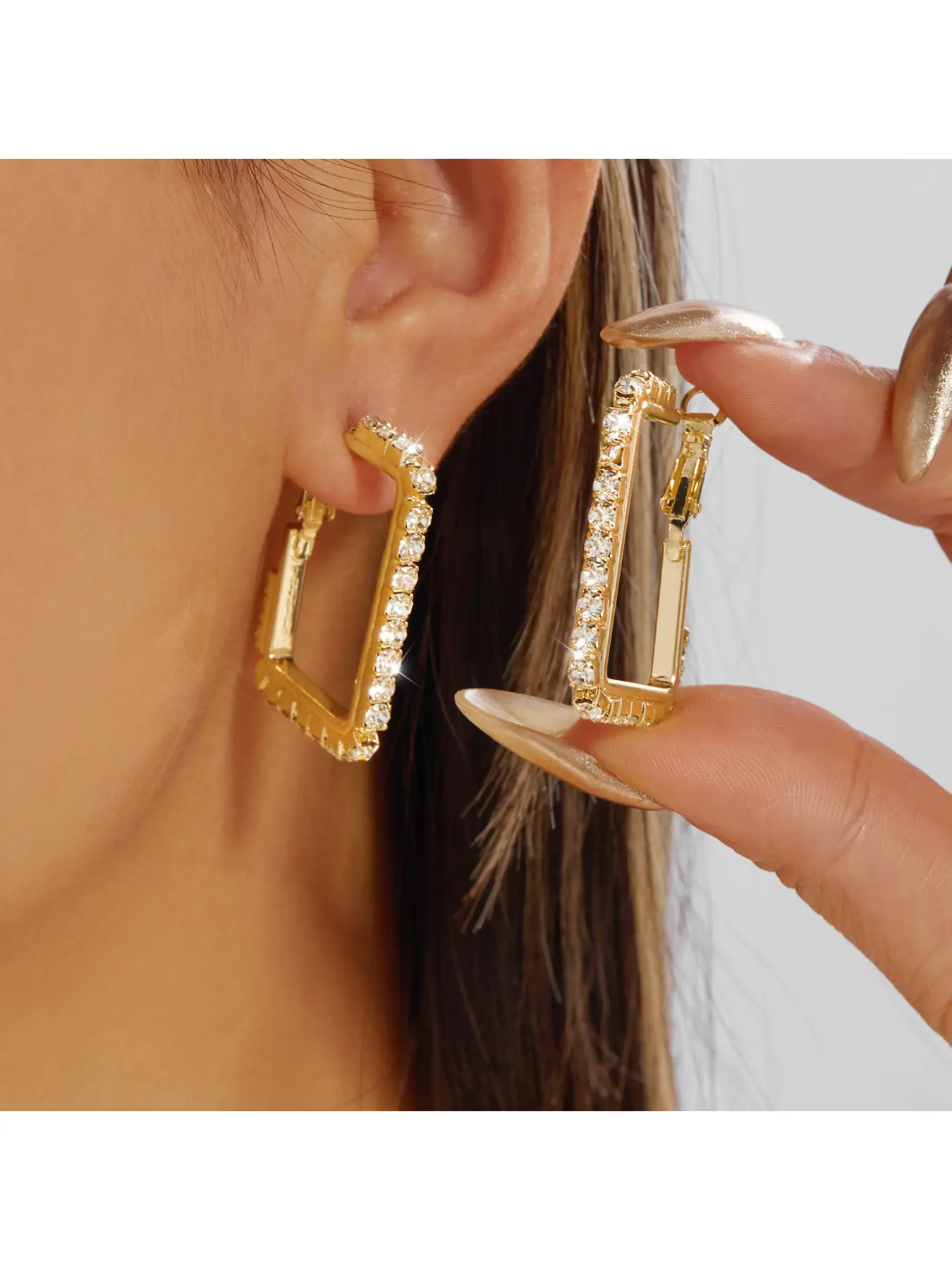 Elegant Rectangular Hoop Earrings Set for Women, Sparkling Rhinestone Geometric Studs, Versatile Fashion Jewelry, Perfect Gift Idea
