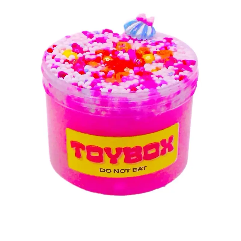 what you get: slime jar, a random add in to fit the theme of the Toybox, and fun freebies!