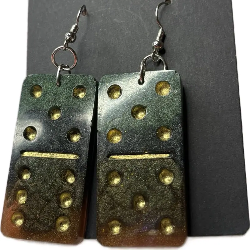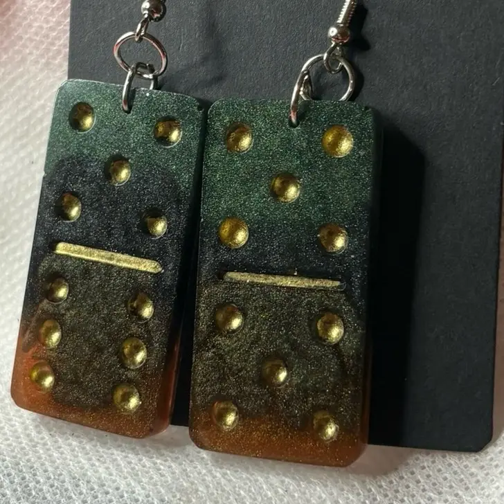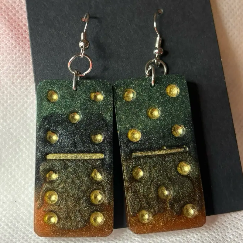 Domino Baby Earrings with Gold Studs and Gradient Green and Orange Finish