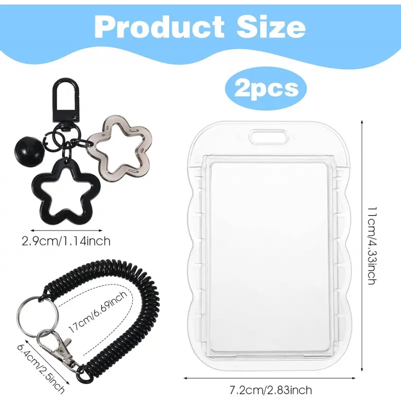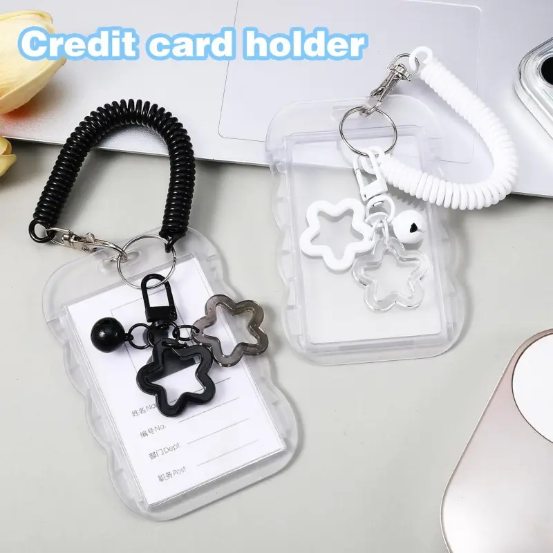 2 Pcs Cute Photocard Holder Keychain, Photocard Holder Keychain, Star Wave Photocards Keychains, Transparent Pc Holders, ID Card Holders Protective Sleeves for Bus Student Card Photo