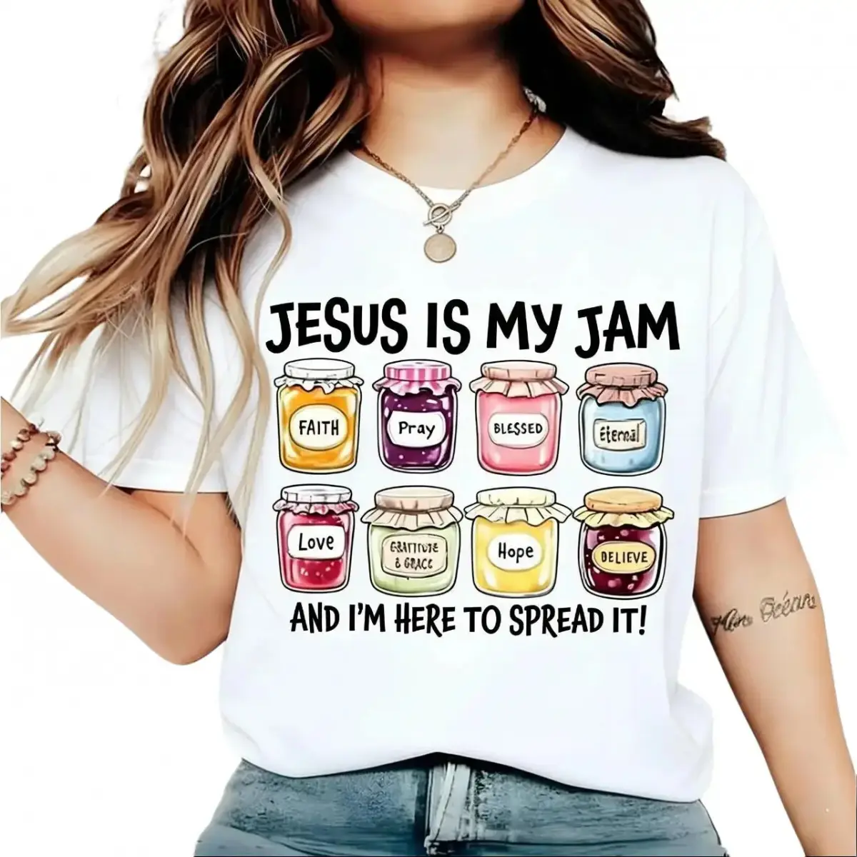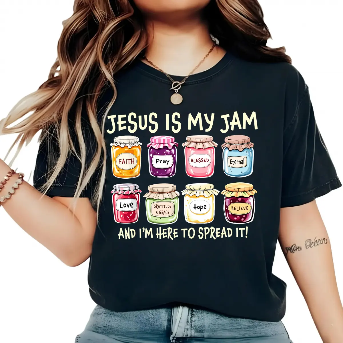 Jesus ls My Jam, Christian Shirt, ChristianGift,JESUS Christ Shirt,Gift For Christian,FunnyJesus Shirt.ChristianMoM tee Round Neck Casual