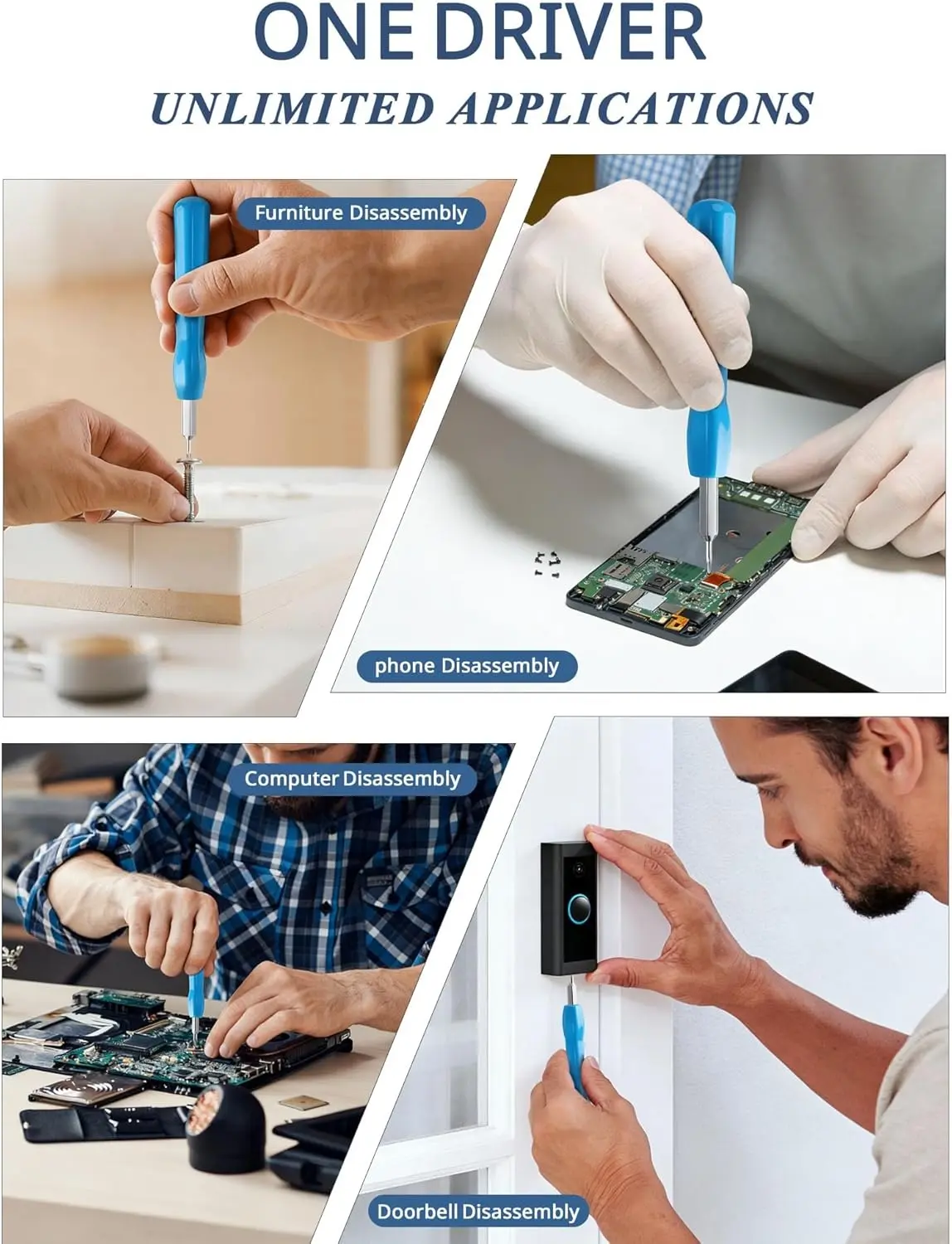Upgrade your Ring Doorbell with this Blue Double-Ended T6 T15 Screwdriver set. Includes 20Pcs/5Set Security Screws for easy battery change and WiFi setup. Perfect for video doorbell camera replacement kits. Simplify maintenance with this comprehensive tool set.