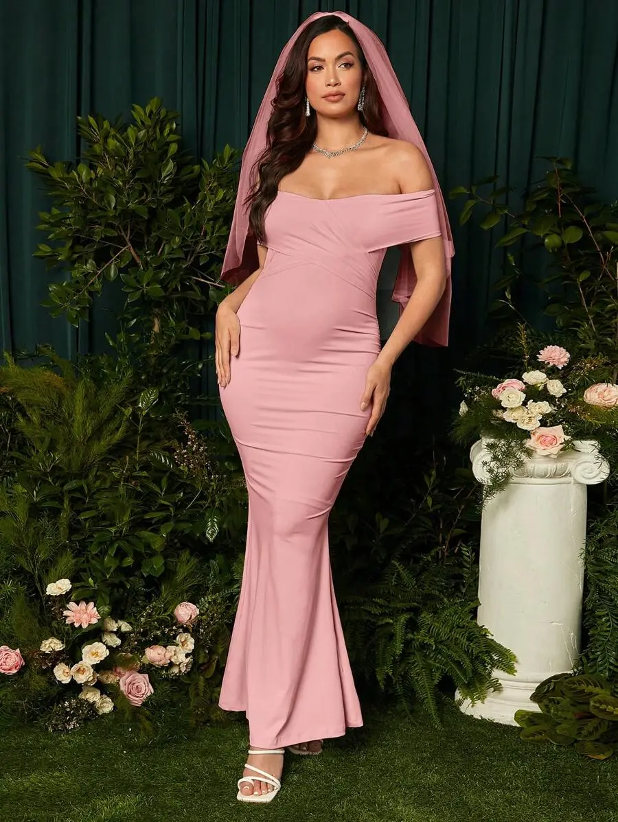 MISHELLA Solid Color Maternity Off Shoulder Mermaid Dress Wedding Guest Sexy For Party