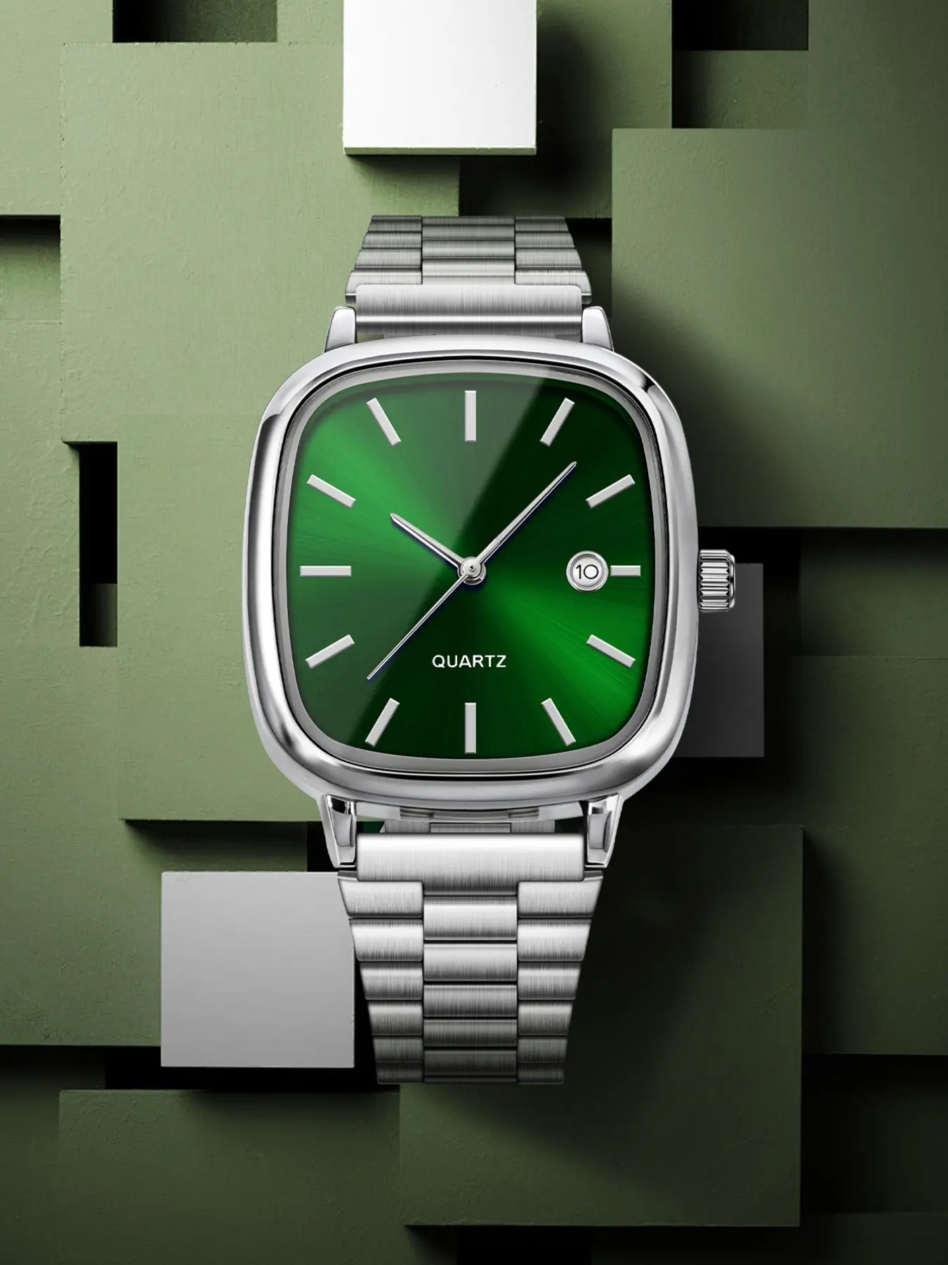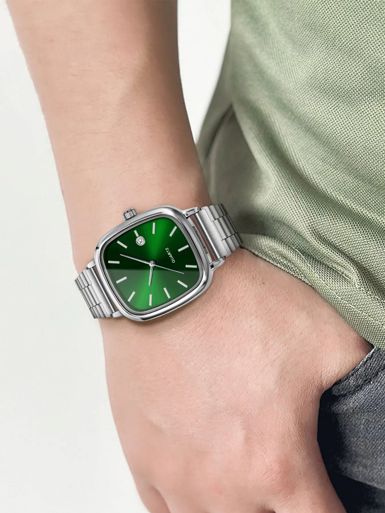 Men's Quartz Watch with Steel Band, Fashionable & Minimalist Design, Square Dial, Luxury Style Inspired by Designer Brands