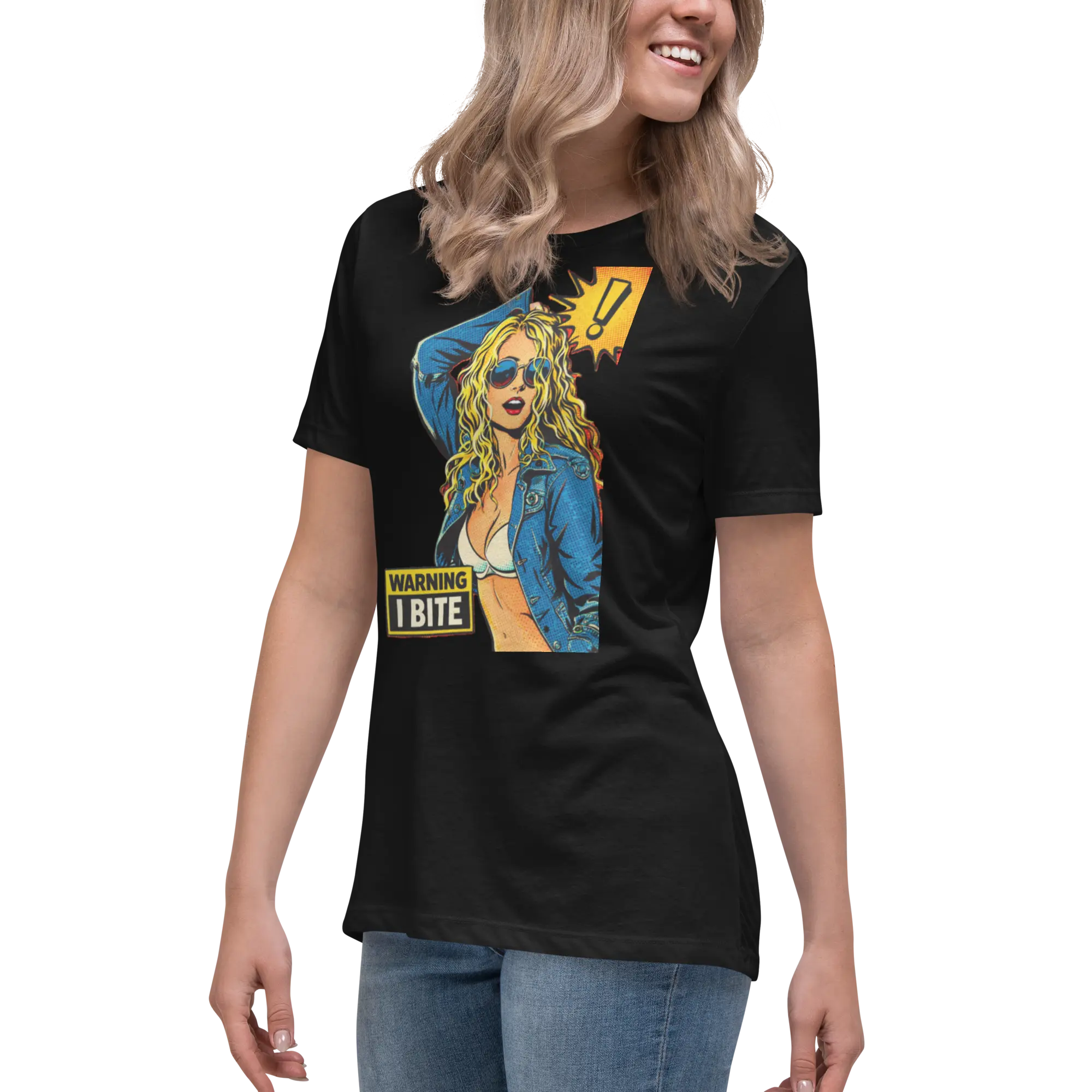 Make a bold statement with this pop-art comic design featuring fierce attitude and playful danger.