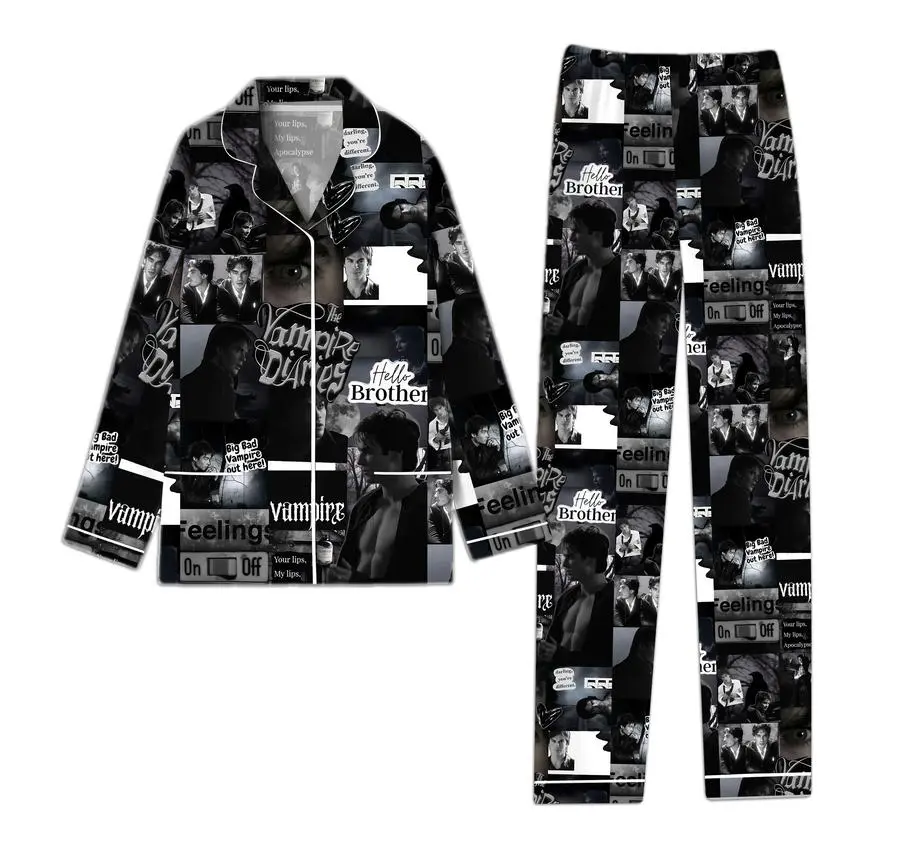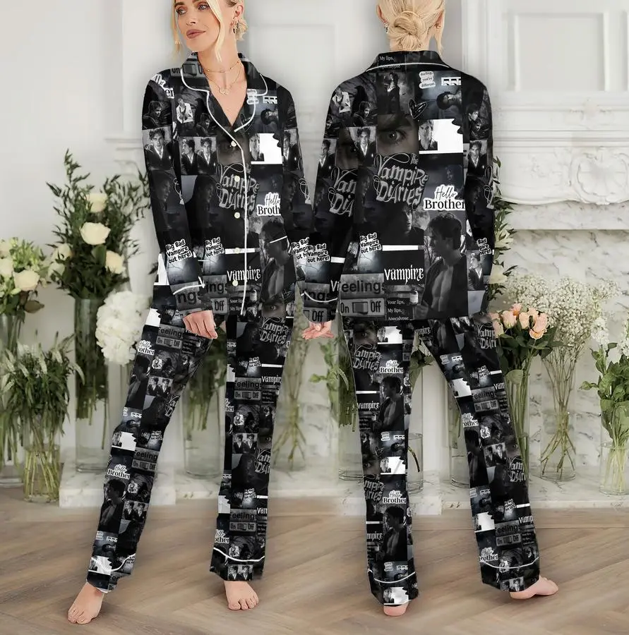 Vampire Diaries Pajamas for Book Lovers, Kid & Adult Matching Family Sleepwear, Halloween Xmas Gift