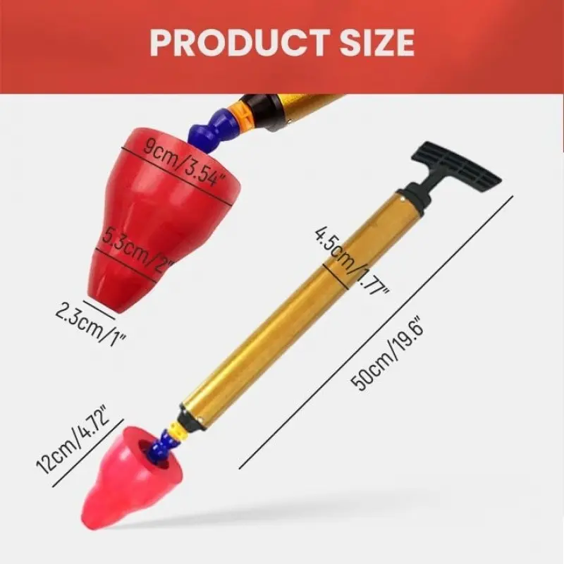 Powerful Pneumatic Shock Technology ensures quick unclogging of toilets, kitchen sinks, bathroom drains, and more. This versatile tool is ideal for various applications, making it an essential plumbing tool for toilets, sinks, and other fixtures. ️