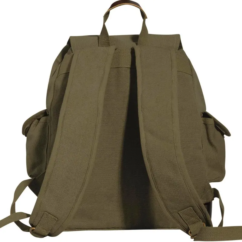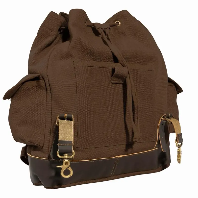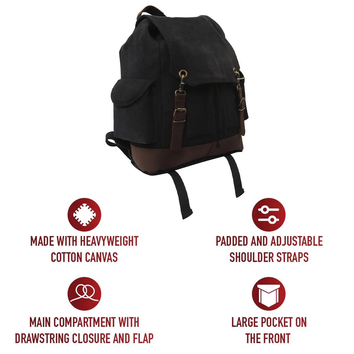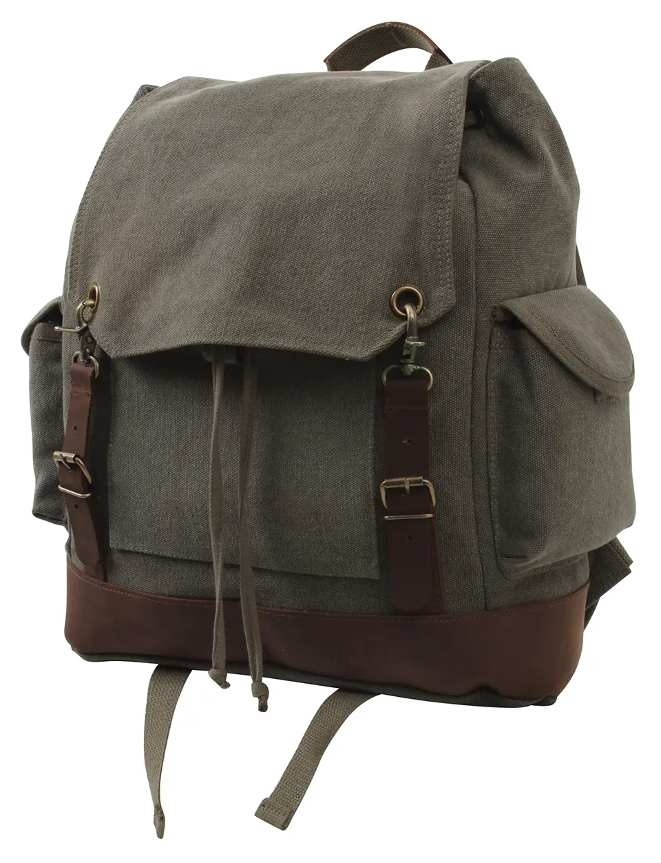·Explore in style with Rothco's Vintage Expedition Rucksack. Crafted from robust cotton canvas with leather accents, this vintage style backpack is perfect for urban outings, wilderness treks, everyday use, and more. Made from Rothco’s durable heavyweight canvas fabric, this superior material is naturally water-resistant, rugged, and is built for the long haul. No one comes close to Rothco’s collection of ultra-premium canvas bags and packs.