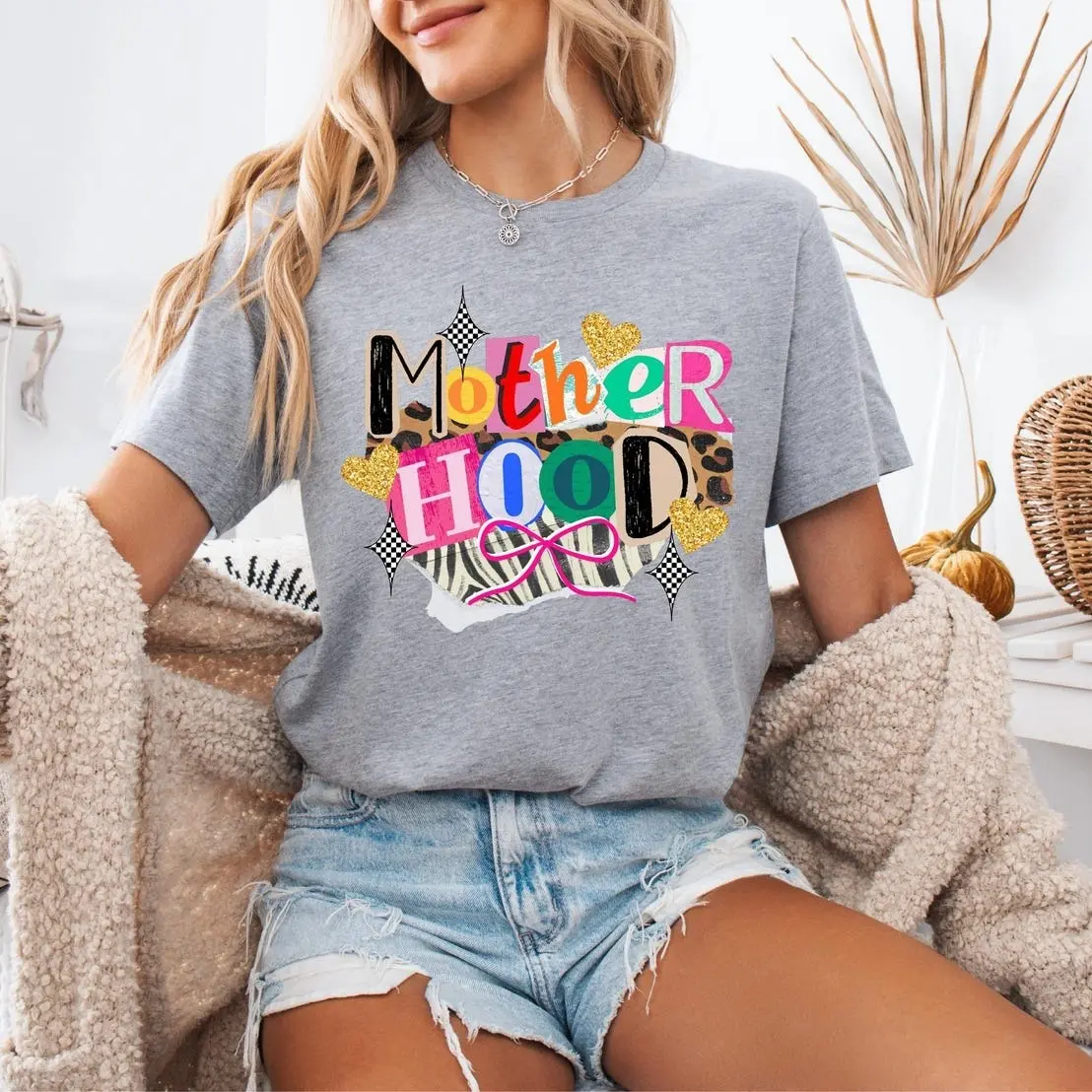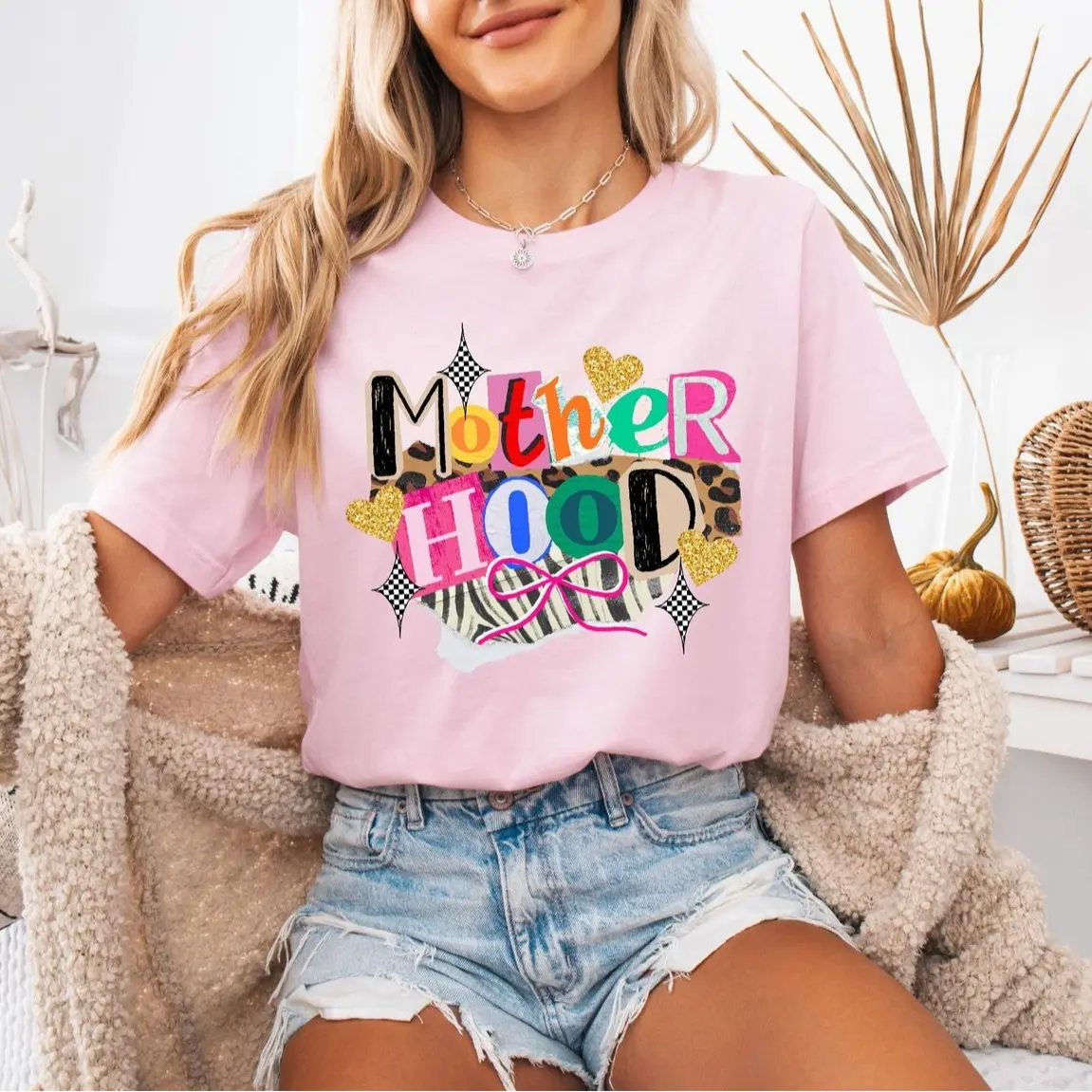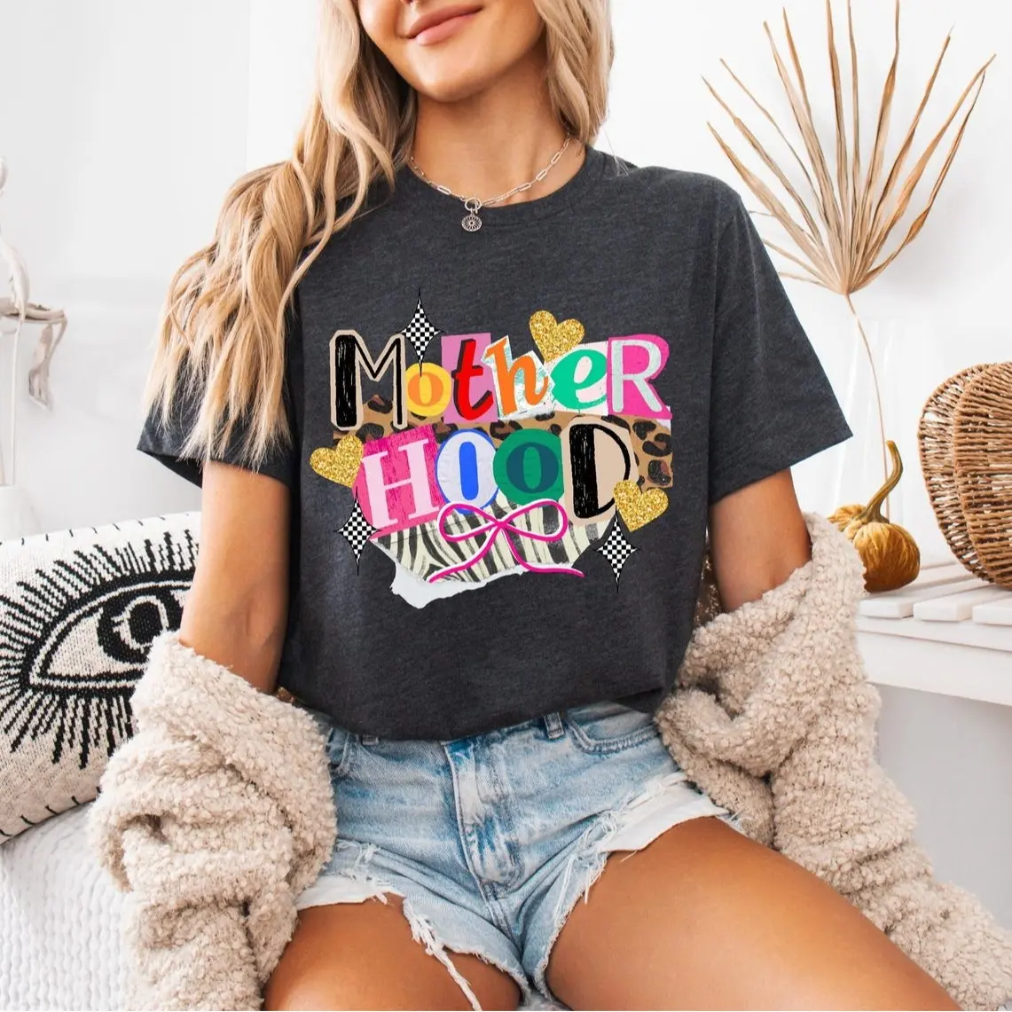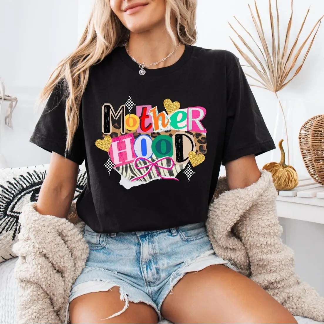 5. Comfort Colors Motherhood Patchwork T-Shirt – Trendy Streetwear Top For Womenswear Summer