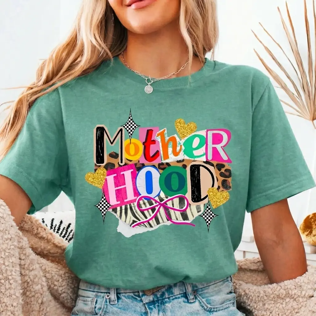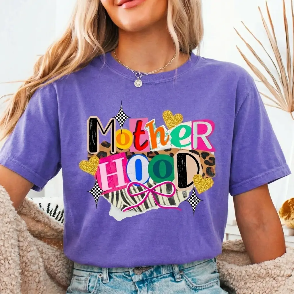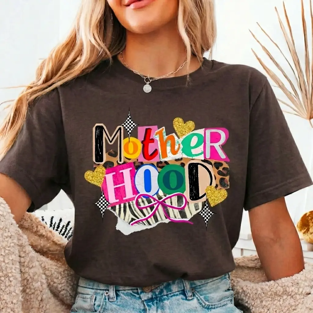 Comfort Colors Motherhood Patchwork T-Shirt – Trendy Streetwear Top For Womenswear Summer