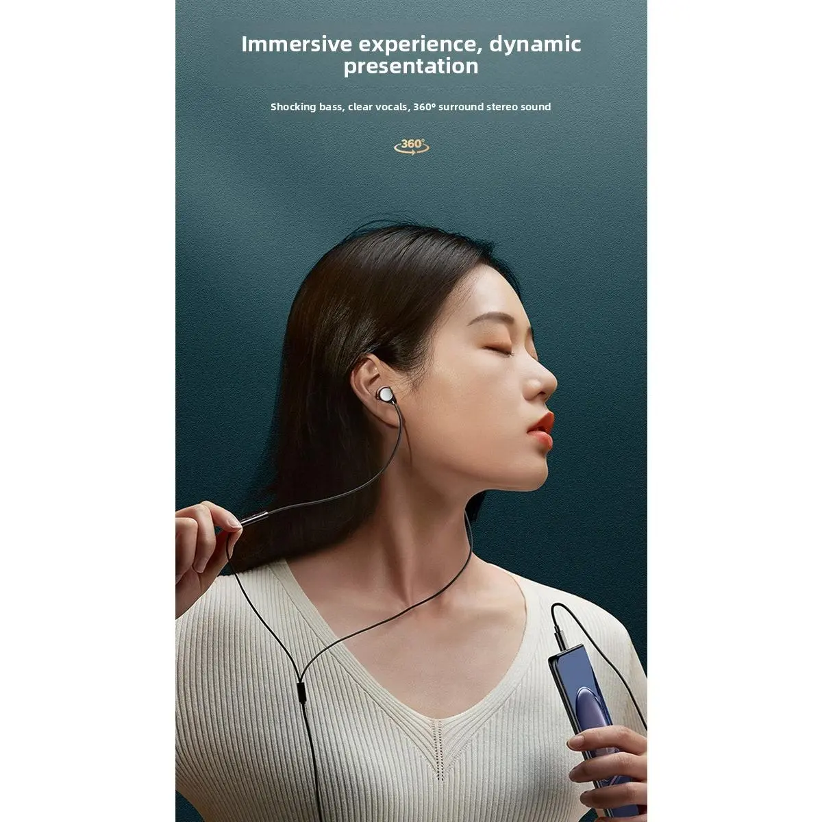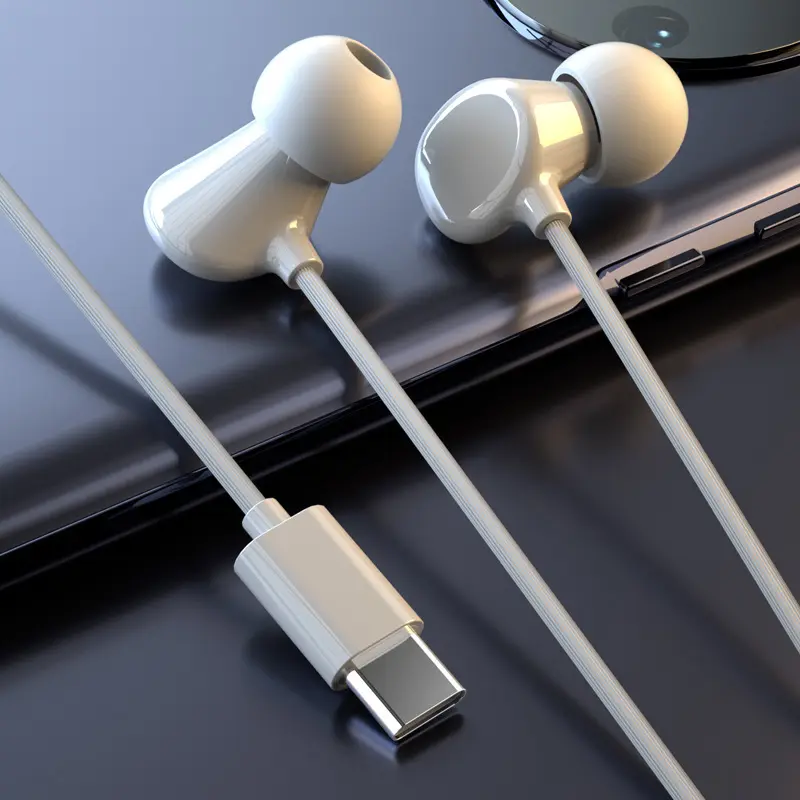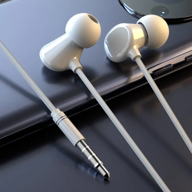In-ear wired ceramic headphones, angled in-ear sleep headphones, high-quality sound with microphone and in-line controls