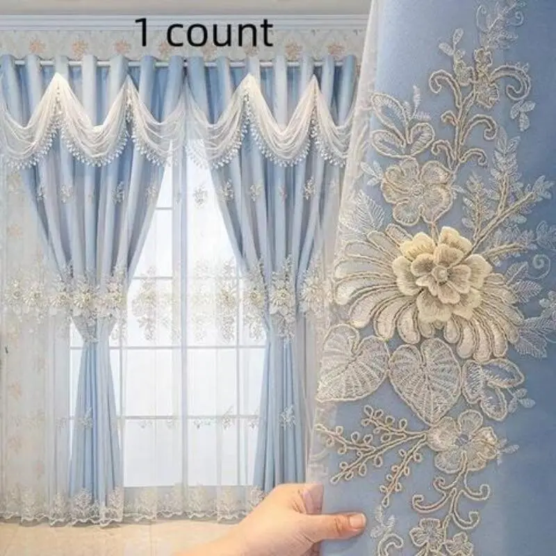 French Luxury Double Layer Sheer Curtain with Ruffle, Light Blocking, Princess Style, Suitable for Kids' Room, Living Room, Bedroom