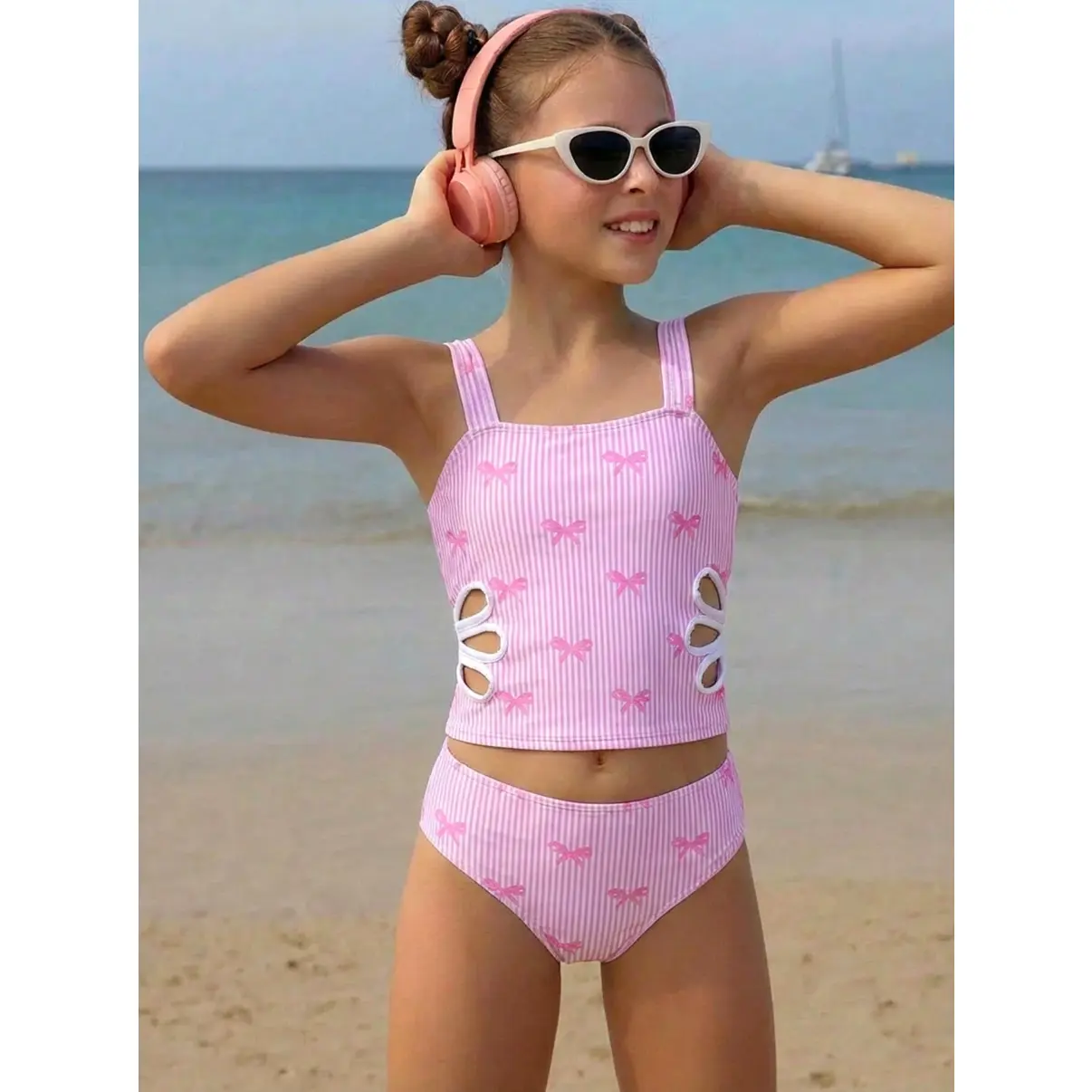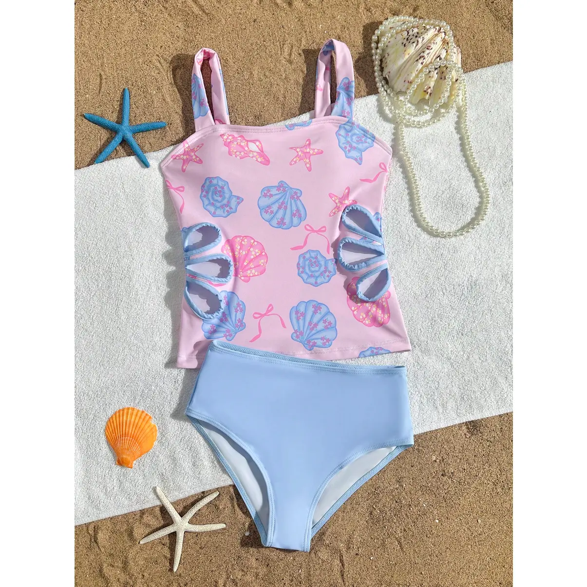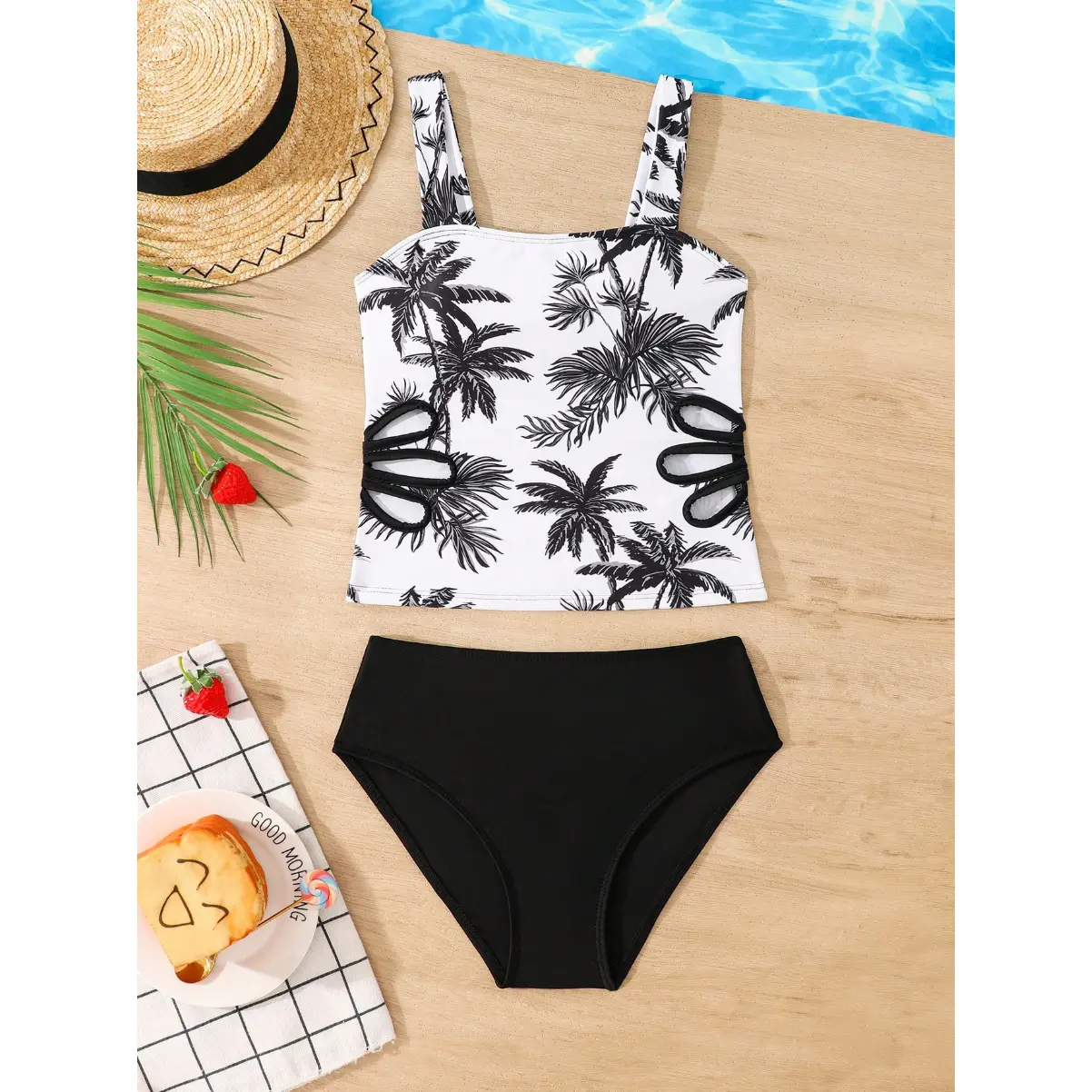 Tomattis Summer Beach Tween Girls Printed Halterneck Tankini Top and Bottom Set, Cute Vacation Swimsuit, Trendy Two-Piece Bathing Suit for Girls