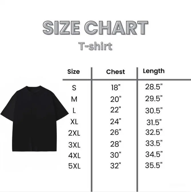 Available: S, M, L, XL, 2XL, 3XL, 4XL, 5XL