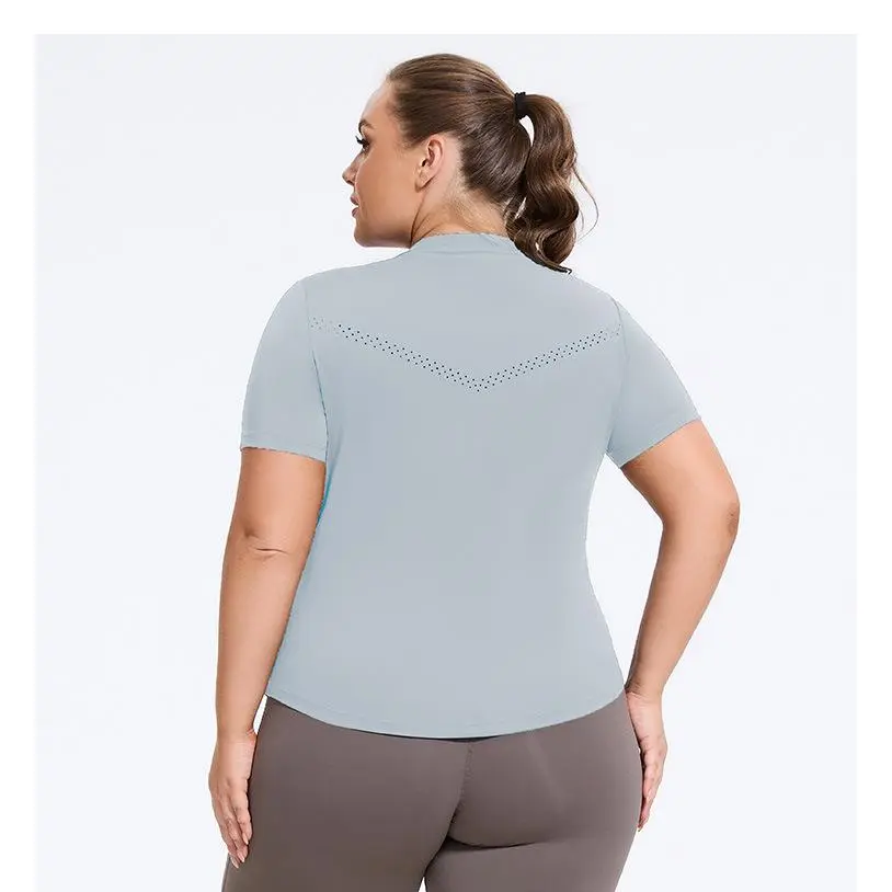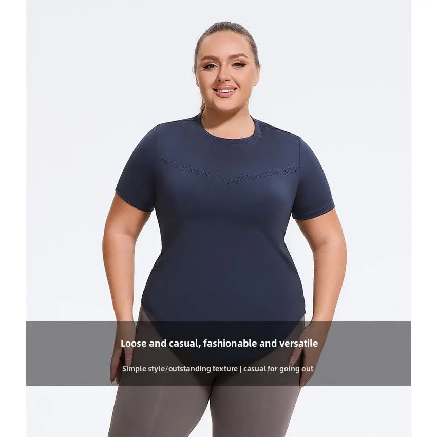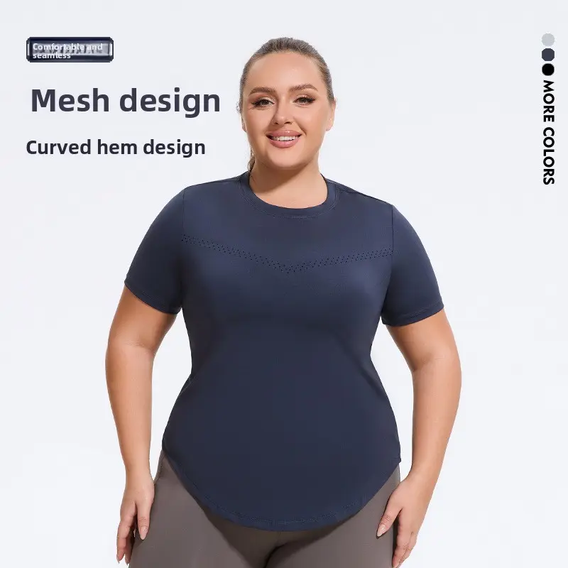 Plus size yoga fitness running elastic T-shirt, sports loose mesh short sleeves quick drying workout tops baggy gym fits oversized