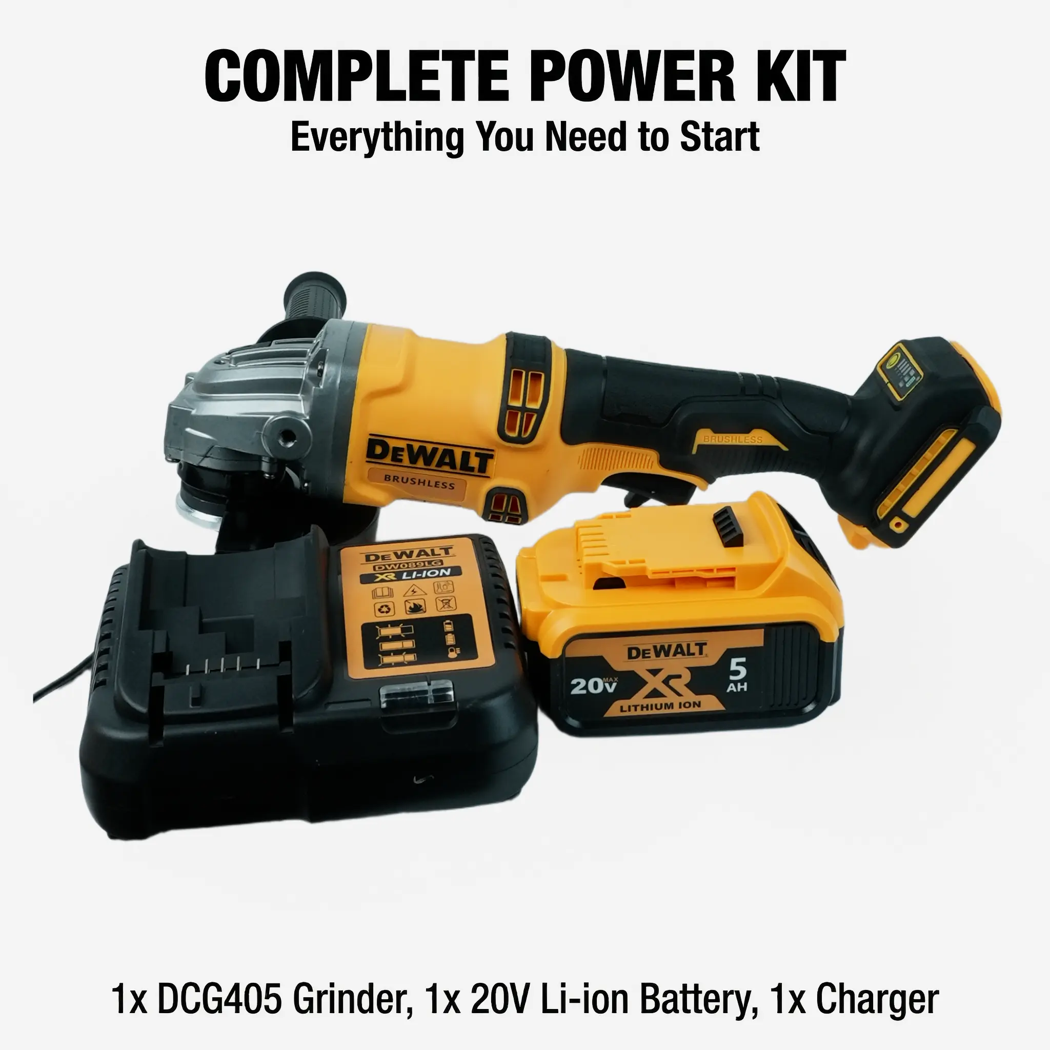DEWALT DCG405-125 20V Angle Grinder, 800W Power, 125mm Disc Diameter, Ideal for DIY and Construction tool kit set