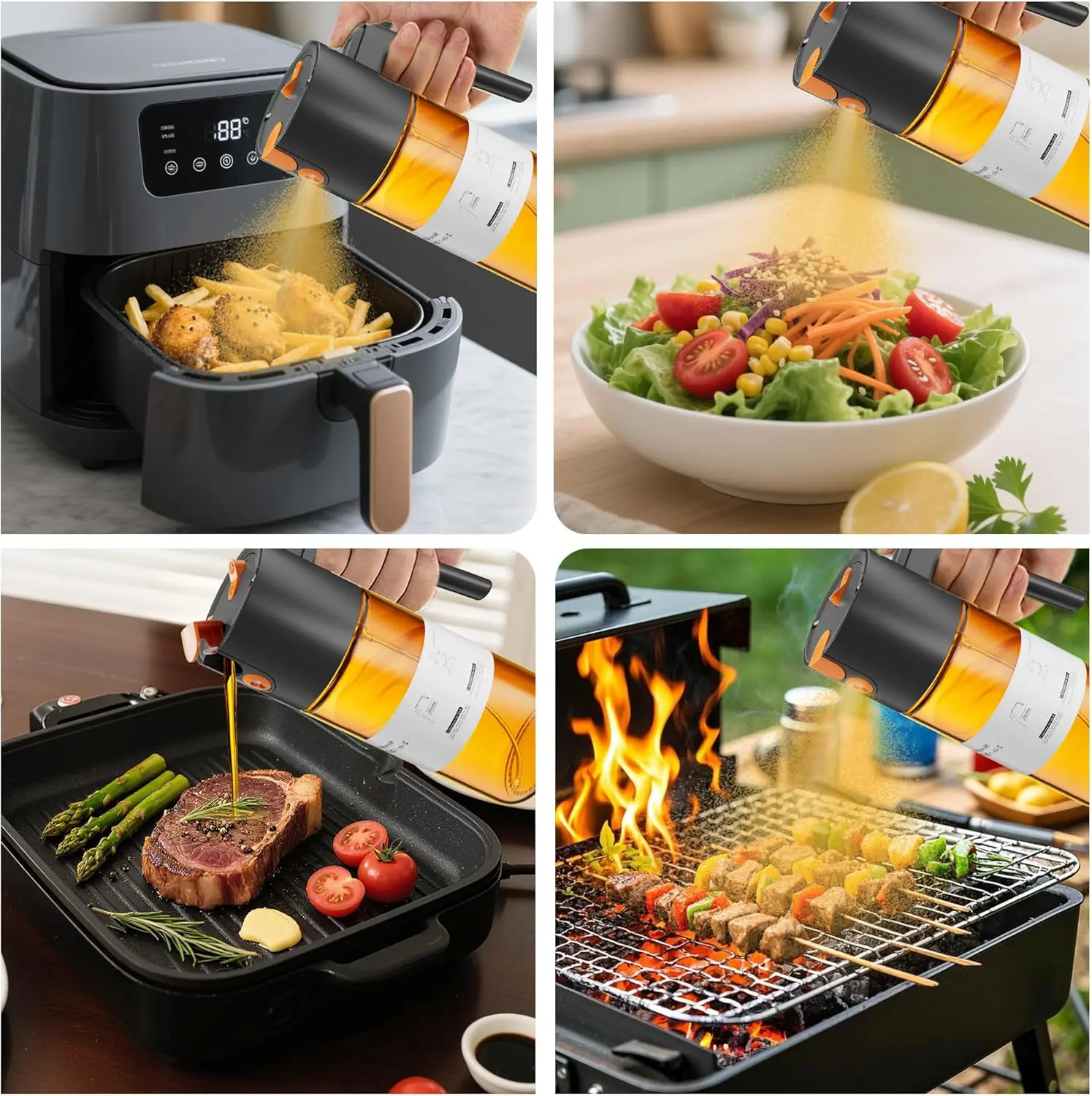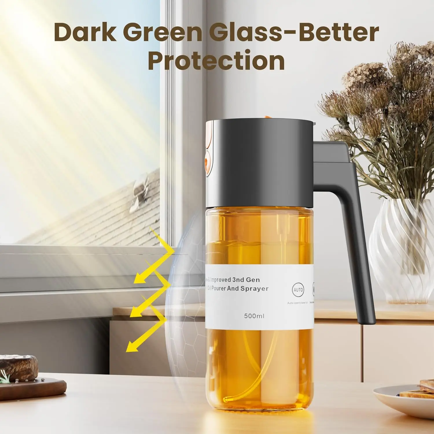 ·Upgraded 3rd-Gen 2-in-1 Oil Sprayer – Precise, Mess-Free Spray & Pour. Fine-mist nozzle, leak-proof lid, UV bottle & non-slip handle. Works with olive oil, vinegar, soy sauce & condiments. Durable & multi-purpose!