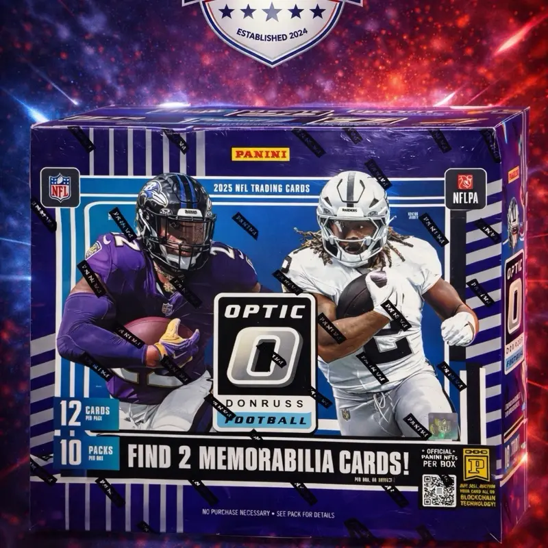 The 2025 Panini Donruss Optic Football Blaster Box delivers one of the most anticipated NFL trading card releases of the year. Combining the iconic Donruss brand with the premium Optic chromium finish, this blaster box is loaded with Rated Rookies, vibrant parallels, and must-have inserts from the 2025 NFL season.