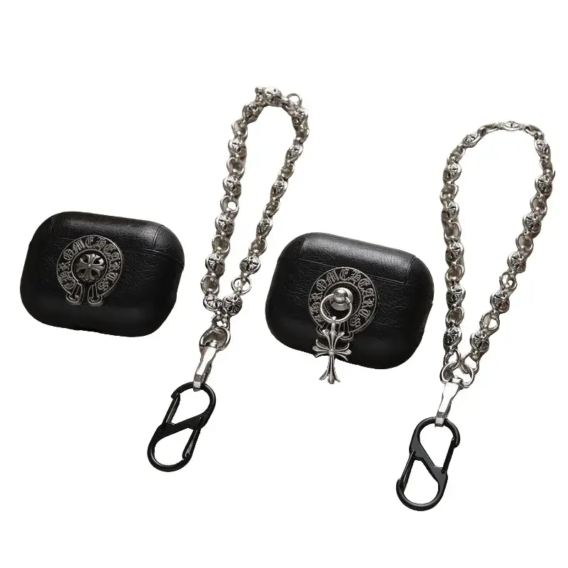 Retro PU Leather Earbud Case With Cross Charm Cool Protective Cover Compatible with Wireless Earbuds Pro 2 Pro 3