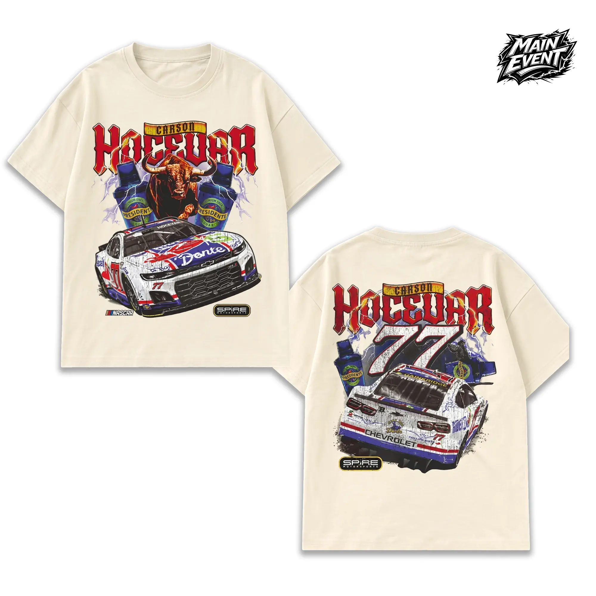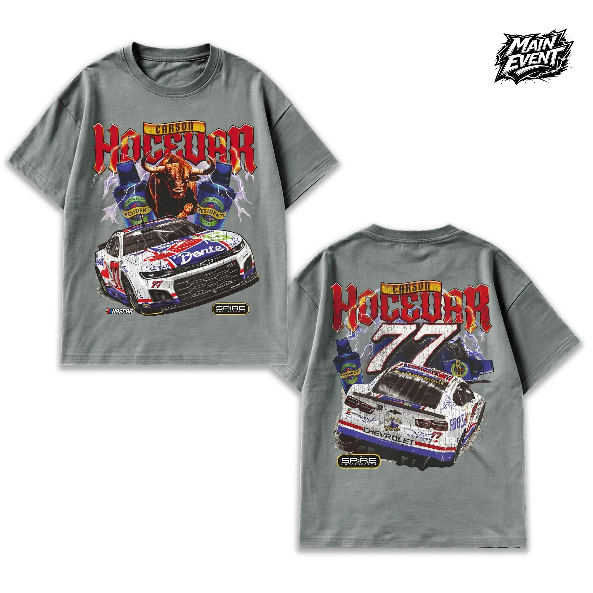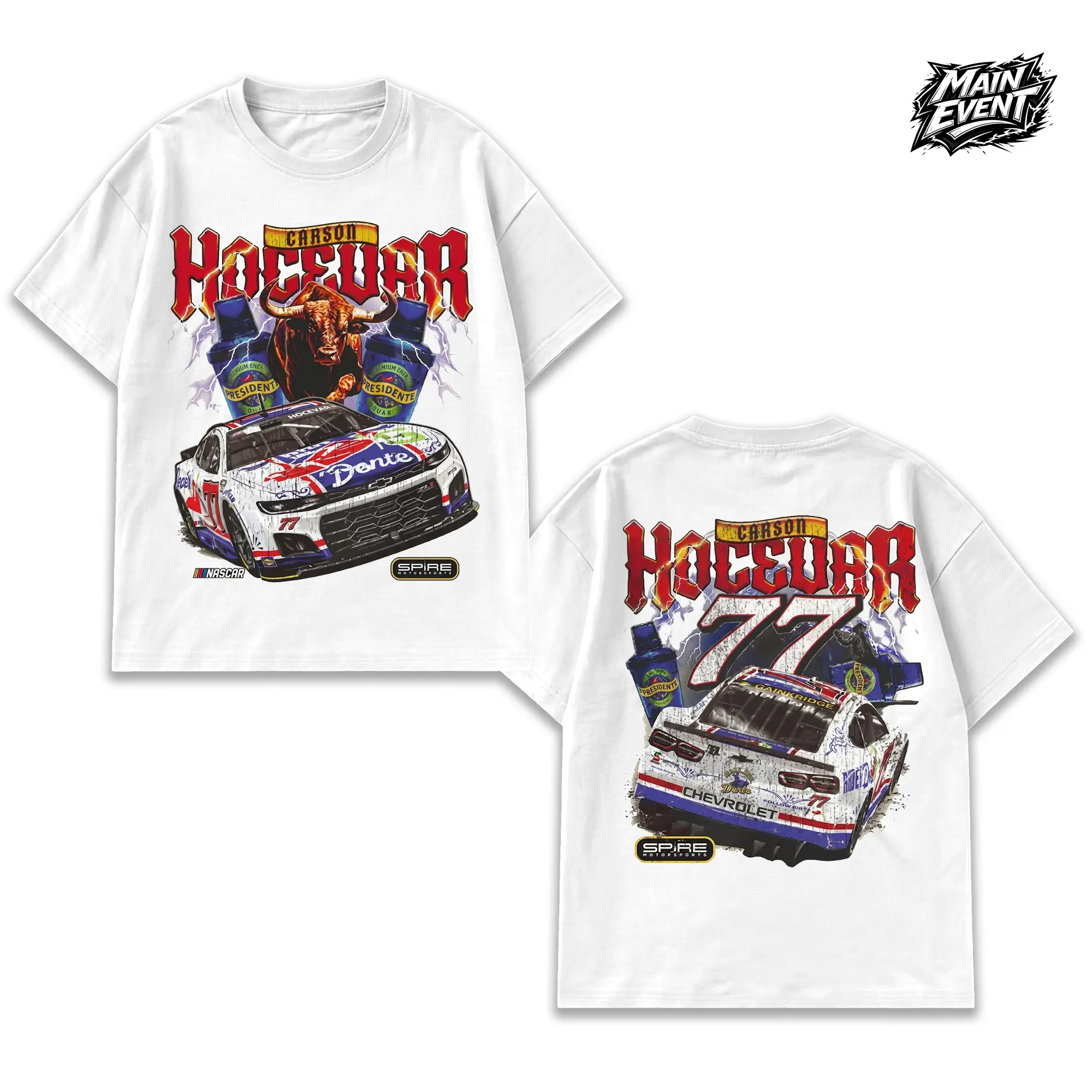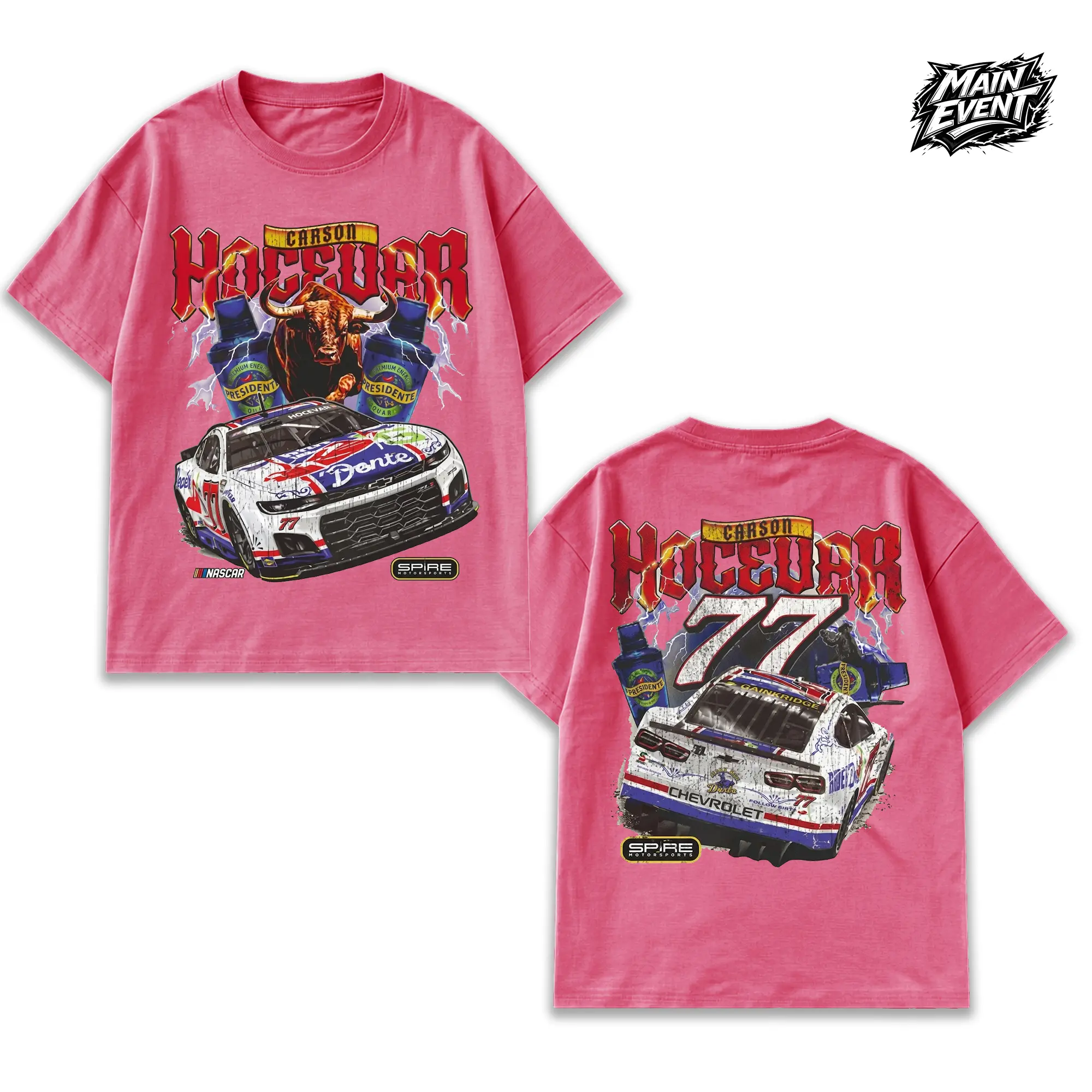 Men's Carson Hocevar E2 Apparel T-Shirt – Black Tee with Chili's Car Graphic, Bold Racing Design, Unisex Fit, Must-Have for Motorsports Fans