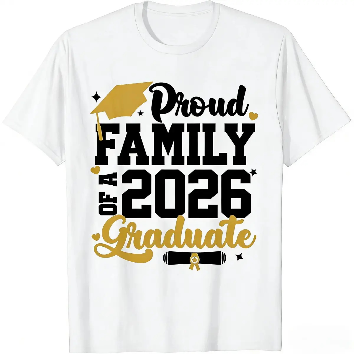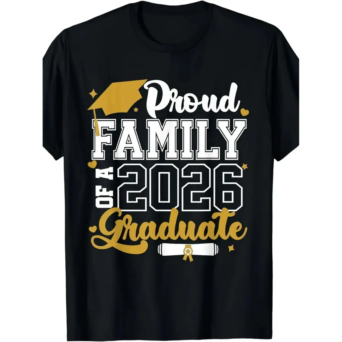 Proud Family of A 2026 Graduate Senior 2026 Class T-Shirt | Same Style for Men And Women, 2025 Summer, Short-Sleeved, Printed, Pure 180G, Crew Neck, All-Season, Vintage Style, Regular Fit