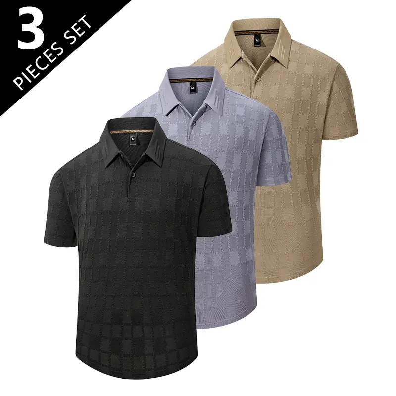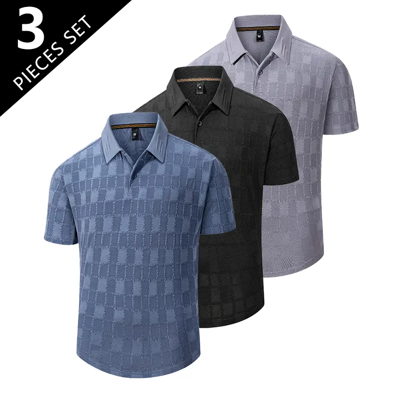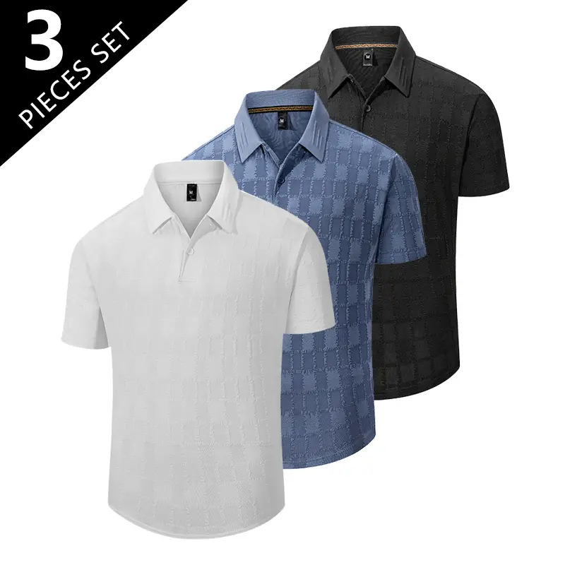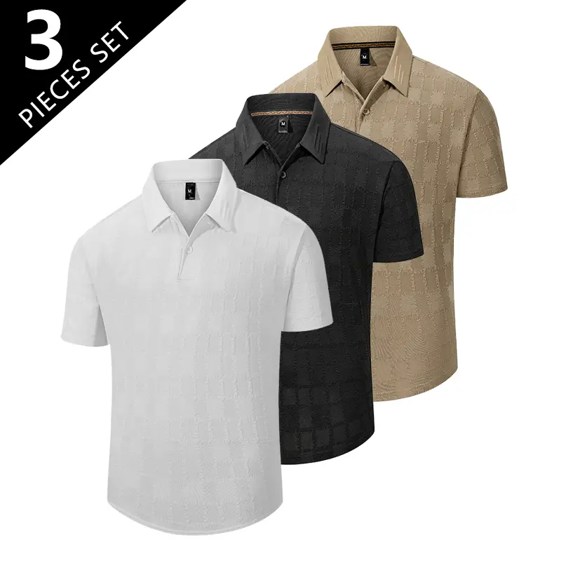 This set includes three versatile t-shirts, perfect for daily outings and outdoor activities. Each shirt features a buttoned turn-down collar, adding a touch of American street style. The simple design makes it easy to pair with various outfits. Ideal for men seeking comfort and style in their casual wear.