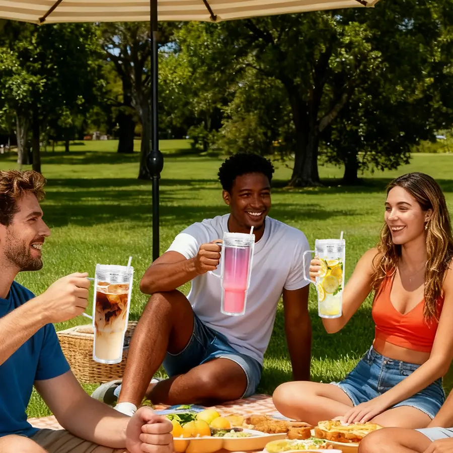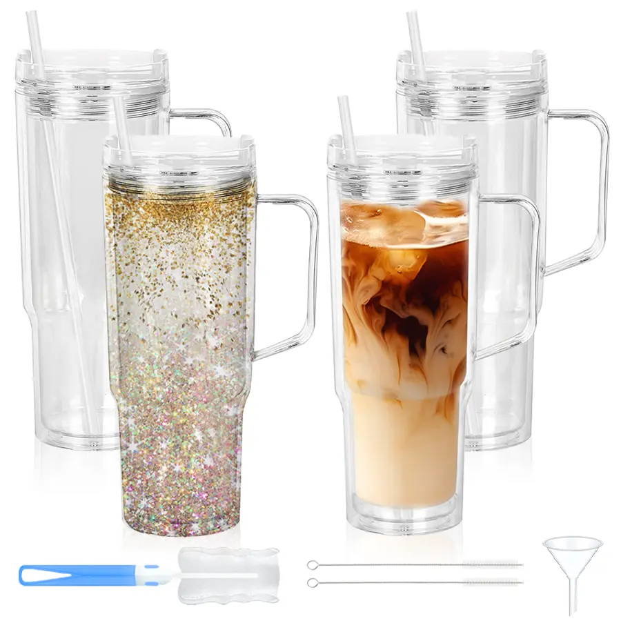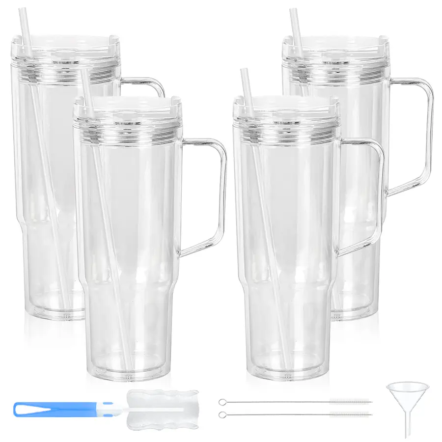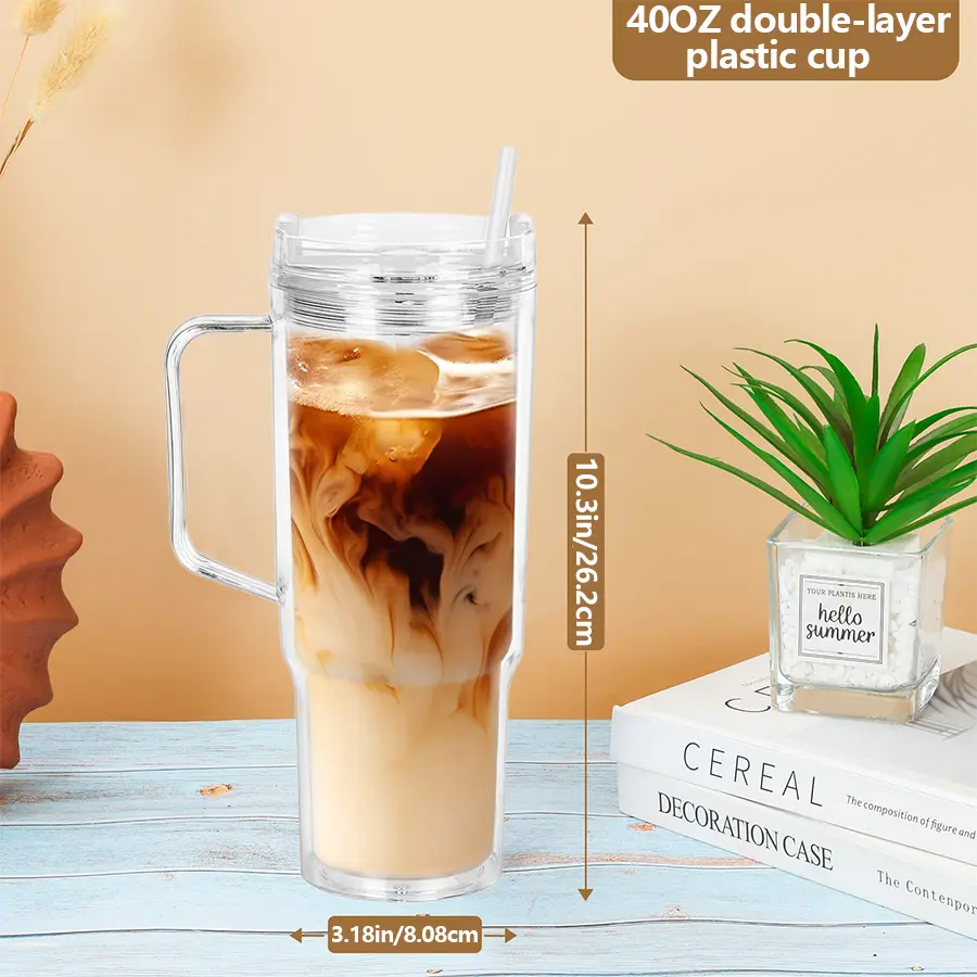 HILAKE 4pcs40oz water bottles, double-layer plastic cups with lids — pre-drilled anti-spill travel cups suitable for hot drinks and iced coffee; ideal for Christmas, Halloween, Easter, Thanksgiving, Valentine’s Day, and more; hand wash only; coffee travel