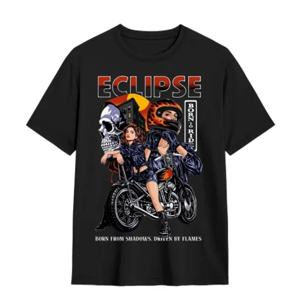 Eclipse Born To Ride Motorcycle Graphic Tee | Biker Skull Vintage T-Shirt | Gift For Motorcycle Enthusiasts Men Women